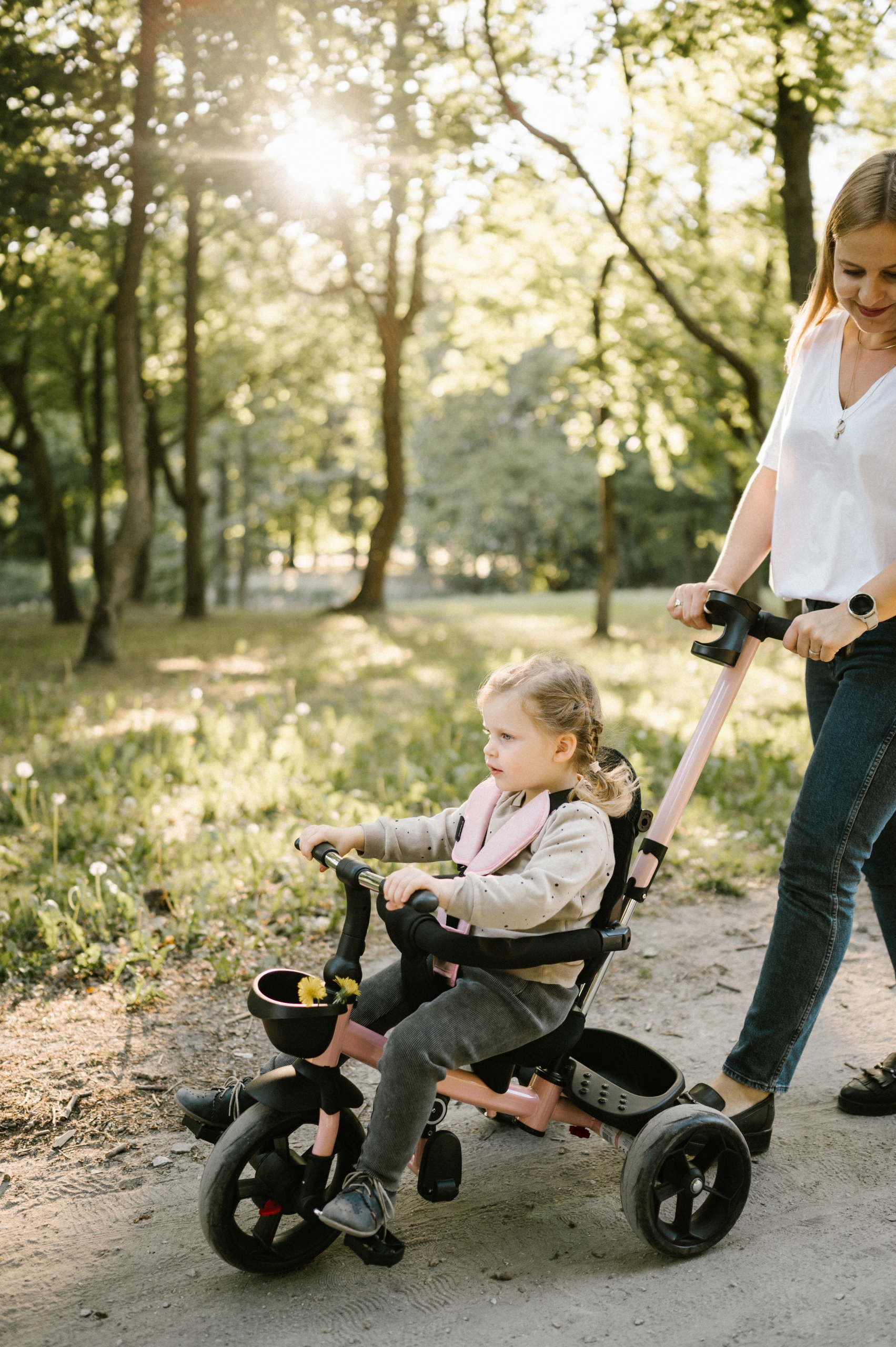 - Регулируемая по высоте ручка для толкания велосипеда.