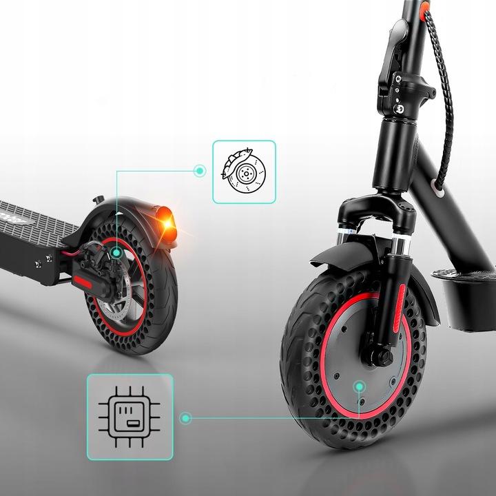 Оснащенный мощным бесщеточным двигателем мощностью 500 Вт, iScooter i9Max позволяет в определенных условиях развивать скорость до 35 км/ч. Идеально подходит для ежедневных поездок на работу или коротких поездок.
