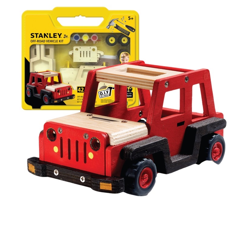 Бросьте вызов воображению своих детей, поддерживая их активность и интерес с помощью деревянного набора для творчества STANLEY Jr. - Внедорожник. Он содержит набор деталей, из которых ваш маленький инженер сможет своими руками создать транспортное средство.