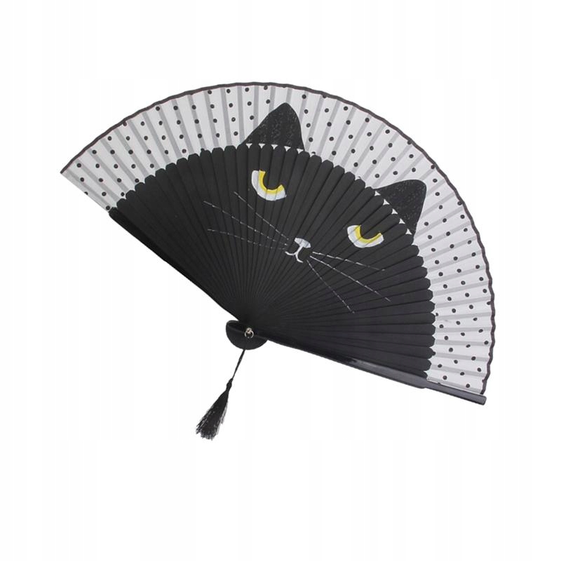 1 * женский складной веер с мультяшным котом, шелковый веер (черный)