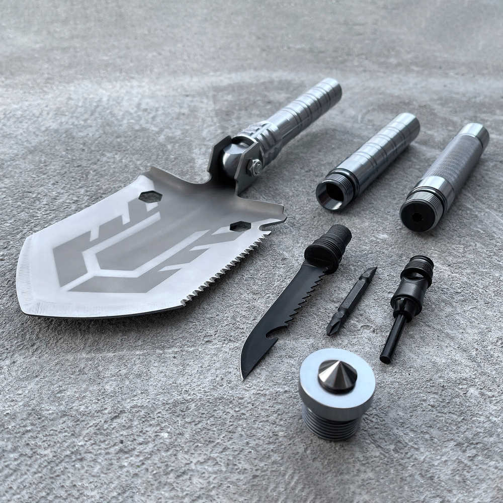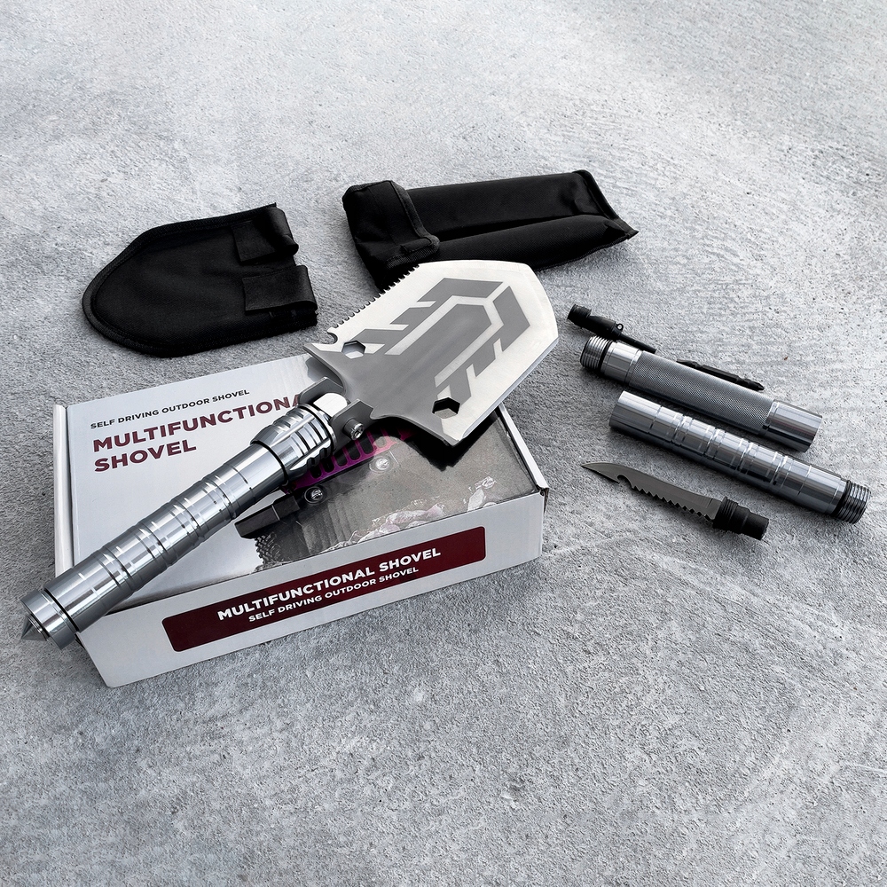 Многофункциональная лопата для выживания — это аксессуар, сочетающий в себе множество различных функций. Он будет незаменим в сложных полевых условиях, на природе, в кемпинге или в походе. Взяв с собой эту удобную лопату, вы сможете не только выкопать ею яму в земле, но и использовать другие прилагаемые аксессуары, такие как острый нож, пилу по дереву и насадку для разбивания стекла и льда. Одного аксессуара достаточно, чтобы предоставить вам несколько различных функций, которые обязательно пригодятся в сложных условиях вдали от цивилизации.