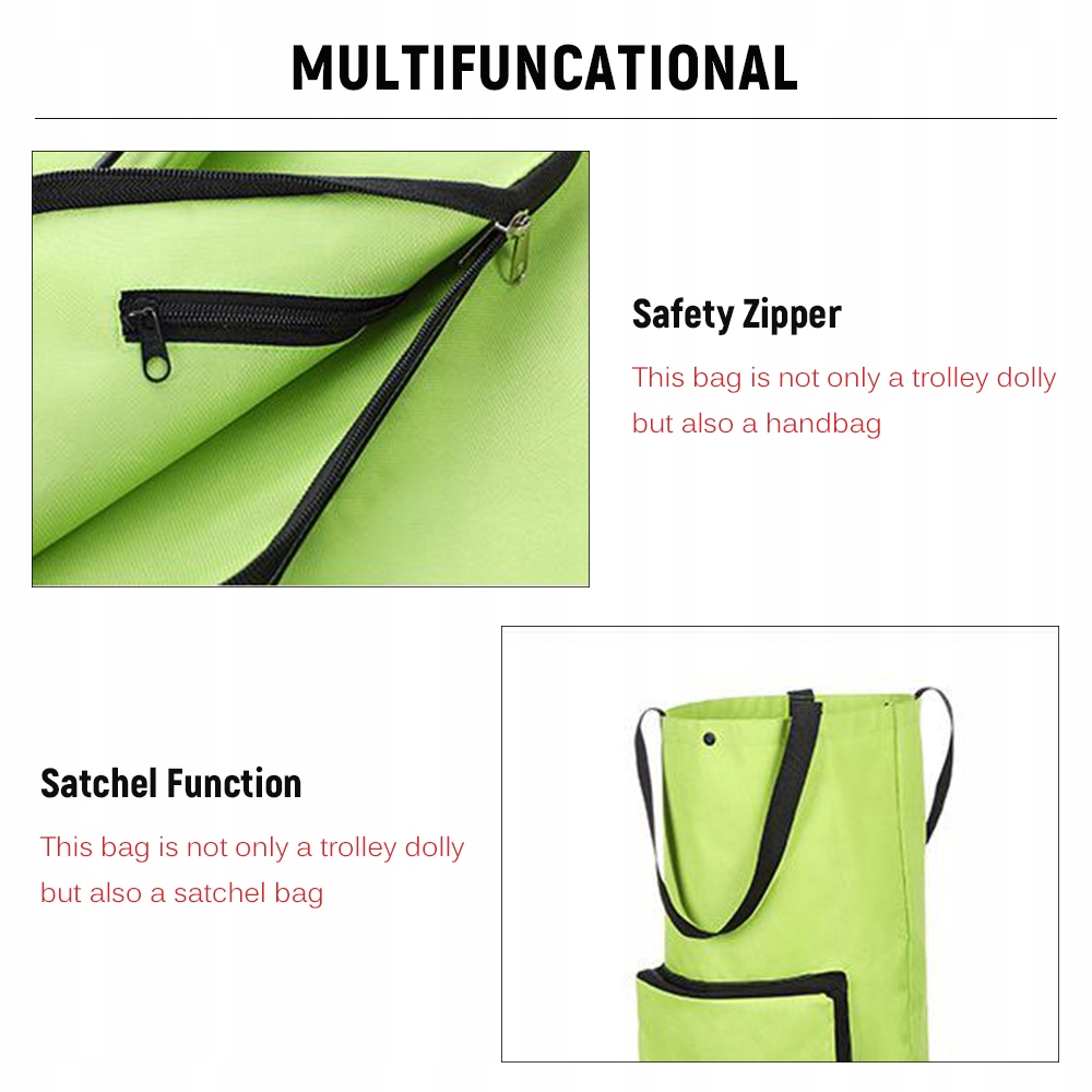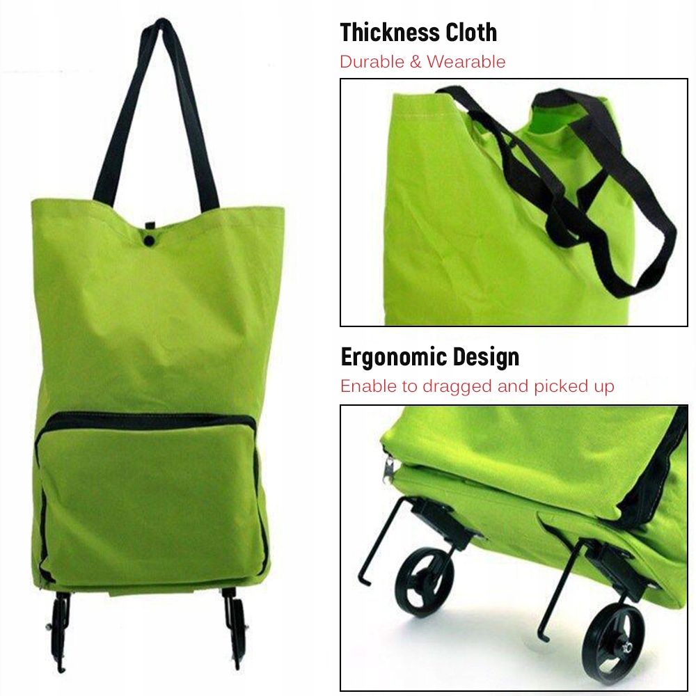 - Складная сумка для покупок на колесиках. Эта складная тележка для покупок оснащена колесами и стойками, которые позволяют складывать сумку, она компактна и легка. Ее также можно открыть и использовать в качестве сумки или тележки для перевозки прочных приспособлений.