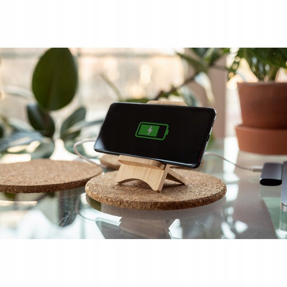 Складываемое бамбуковое беспроводное зарядное устройство B'right 10W, телефонная подставка, работает с телефонами с индукционной зарядкой, функция зарядки работает с горизонтальным положением телефона, ввод Micro USB DC DC 5V/2A, 9V/1.67, Micro USB Microbel в Set