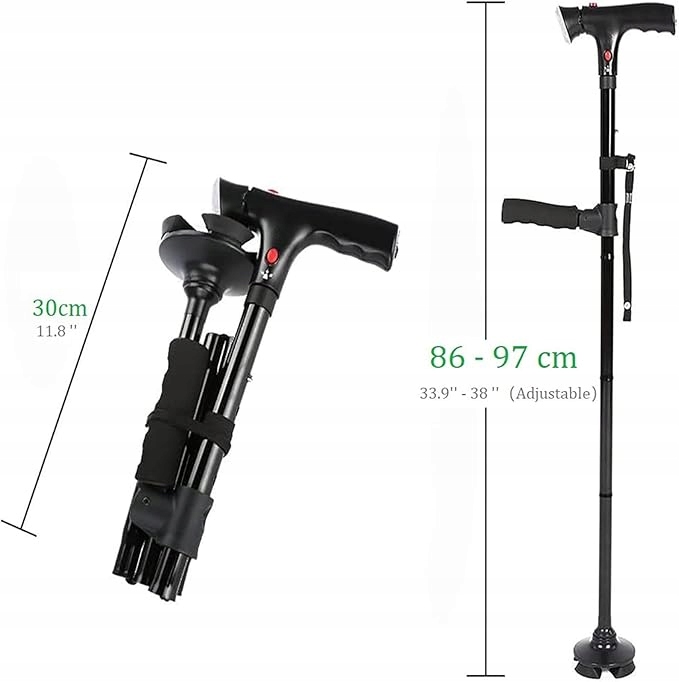 ✔ Каждый может быть складывающейся прогулкой. В идеале подходит для пожилых людей, , а также для людей после выпуска или травм, и благодаря 5 -скоростной корректировке высоты (86 см - 97 см) вы приспособитесь к своим потребностям. Благодаря вашим возможностям, размерам и значению, палочки можно легко сложить и упаковать в багаж, распространяться со временем.