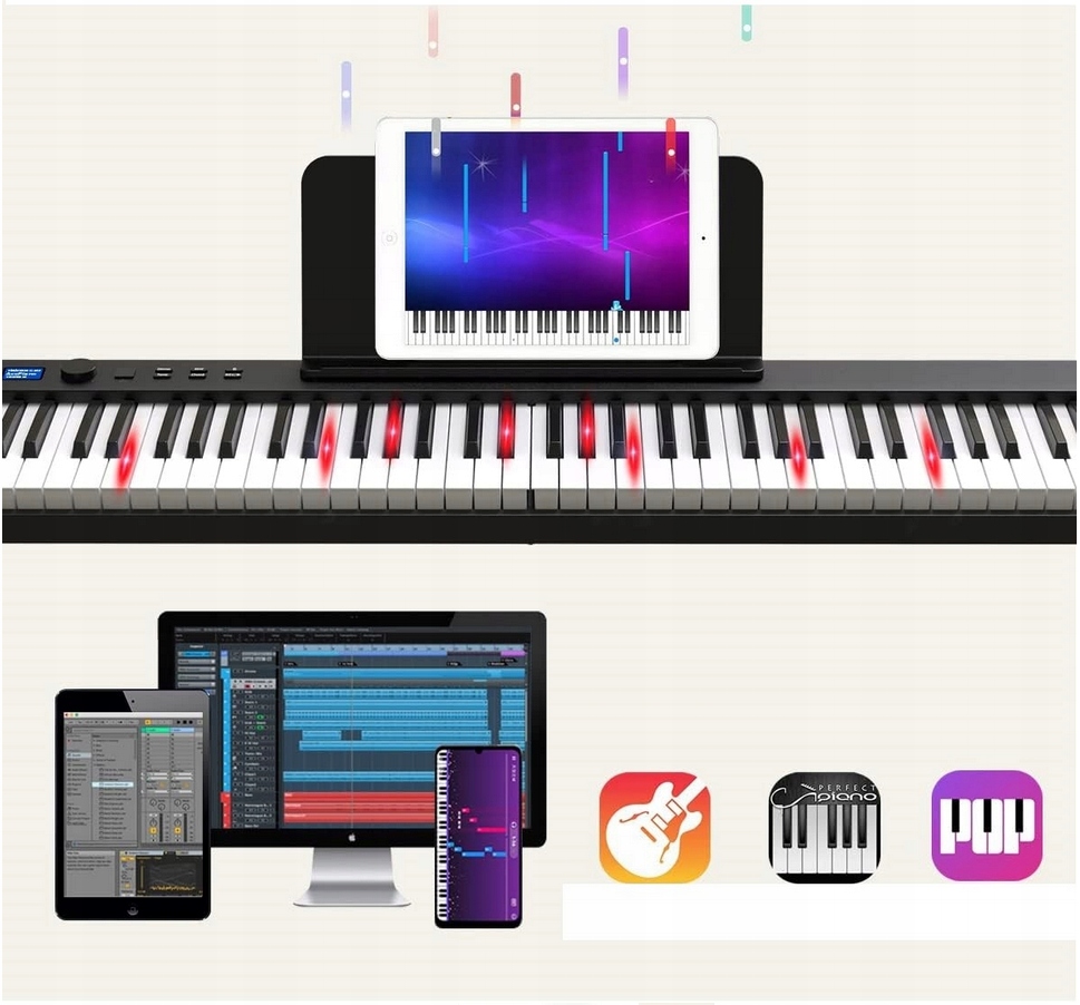 белая складная клавиатура цифровой пианино 88 Full -Size клавиши, Bluetooth Connectivity H1> Новый продукт, от продажи склада h2>