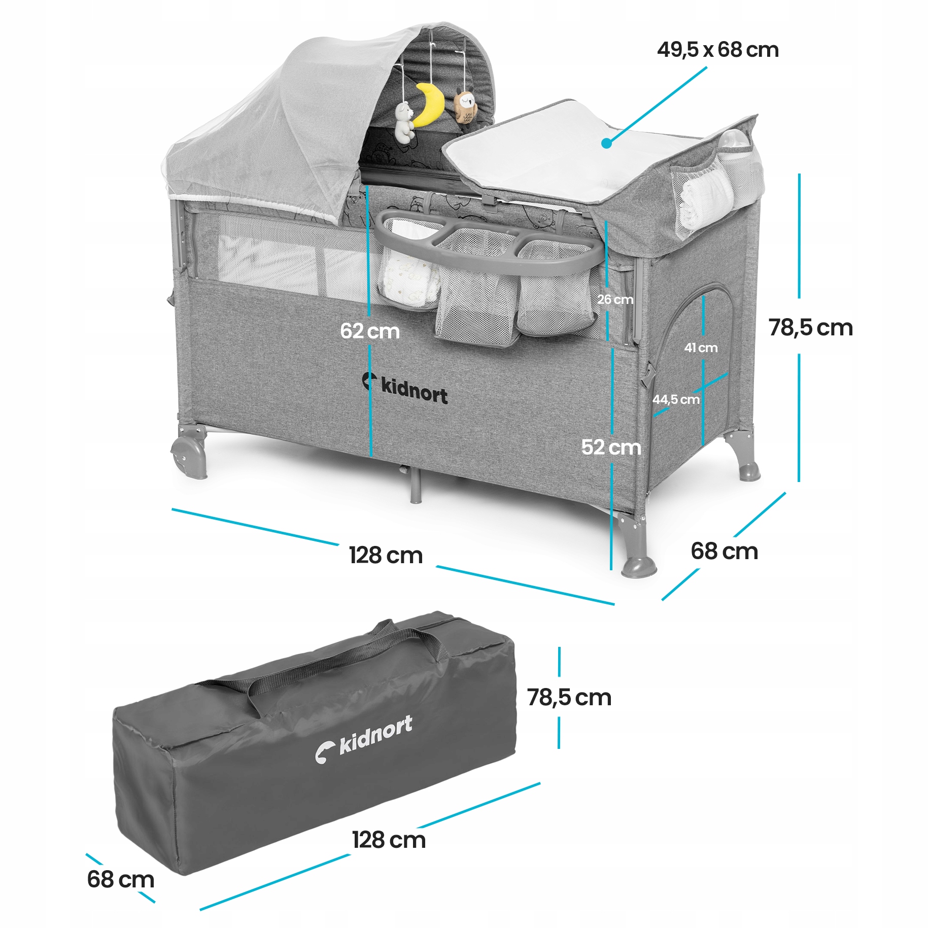 Включает транспортный пакет, который облегчает кроватку. Сумка обеспечивает удобное и безопасное хранение, защищая кроватку от повреждений. Благодаря этому, взятие кроватки в путешествие становится проще и удобнее для родителей. Компактный размер позволяет вам удобно взять их в путешествие, не беспокоясь об отсутствии места в багаже. Благодаря этому кроватку становится практическим решением для родителей, которые часто путешествуют с ребенком. После складывания он занимает мало места, что облегчает его хранение и транспорт