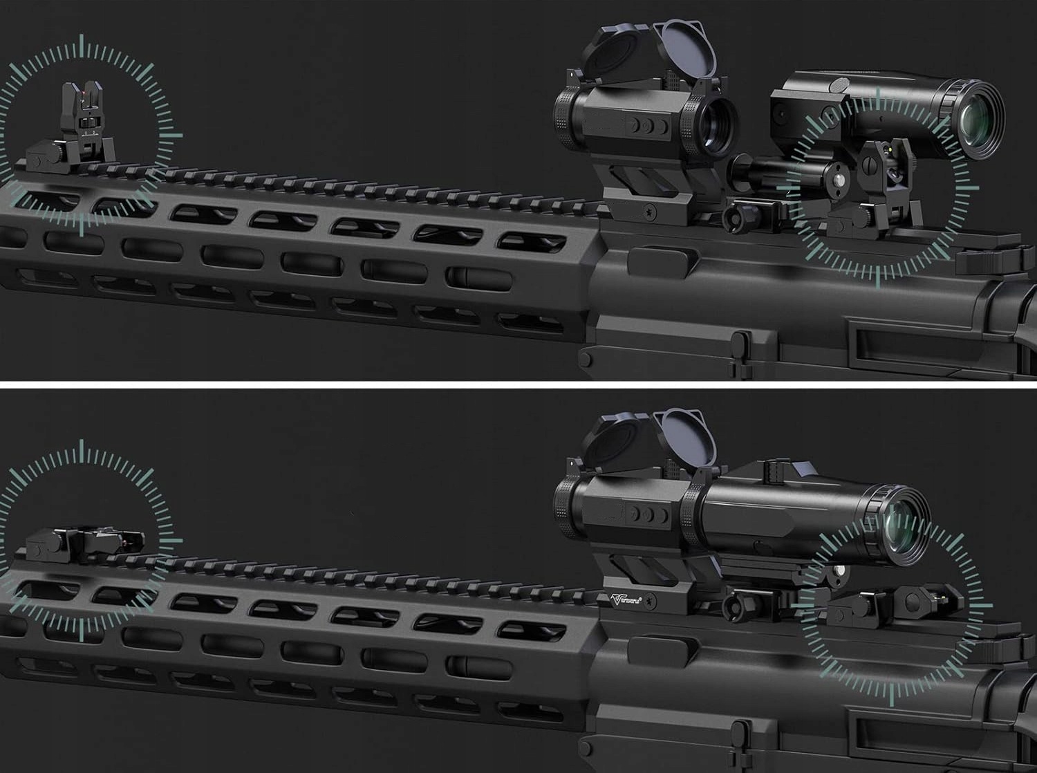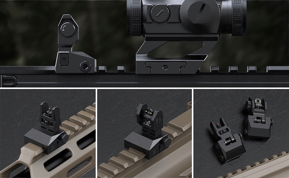 - Складные прицелы могут быть легко активированы с помощью кнопки. Пюре с легким, но чрезвычайно прочным алюминиевым и твердым анодированным.