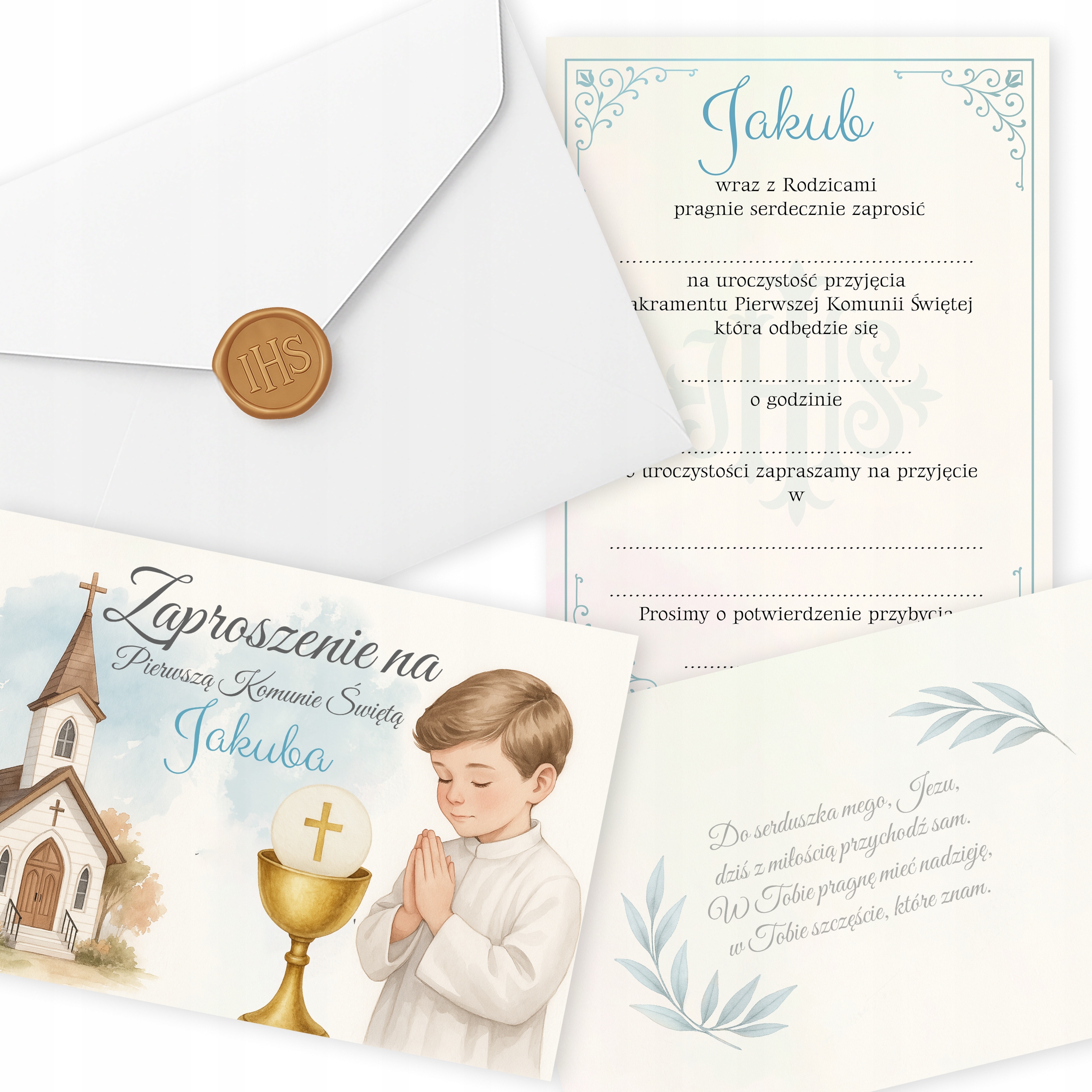 Просматривая «Складное приглашение причального мальчика Персонализированное имя+конверт+печать», вы можете быть уверены, что данный товар из каталога «Причастие» будет доставлен из Польши и проверен на целостность. В цене товара, указанной на сайте, учтена доставка из Польши. Внимание!!! Товары для Евросоюза, согласно законодательству стран Евросоюза, могут отличаться упаковкой или наполнением.
