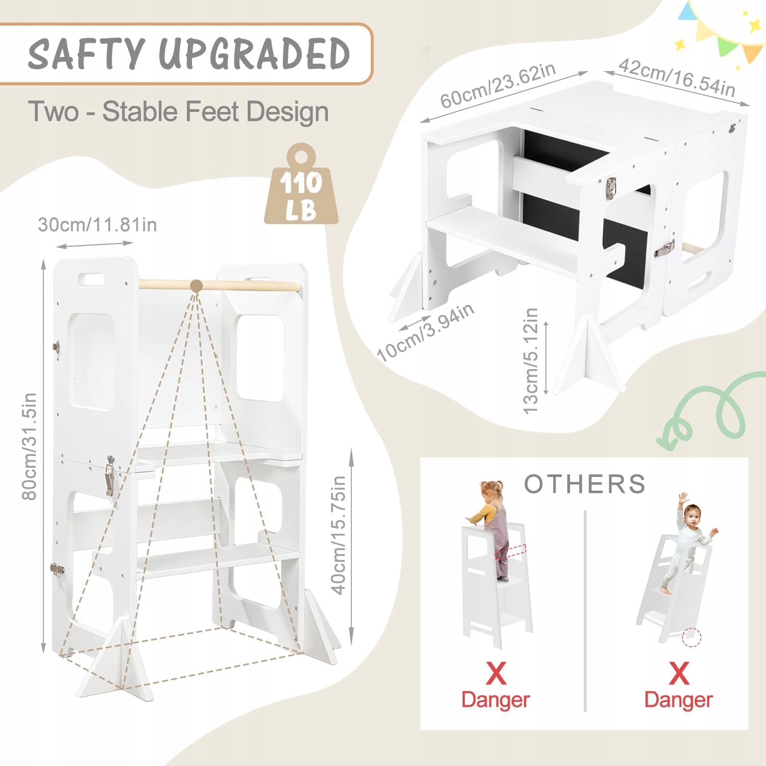 Башня Лабибе действует как лестница, таблица и платформа складывания. Это идеальное решение для обучения независимости, веселья и повседневной деятельности. Его легко хранить, а его складной дизайн обеспечивает комфортное использование в любом месте. 🪑📚