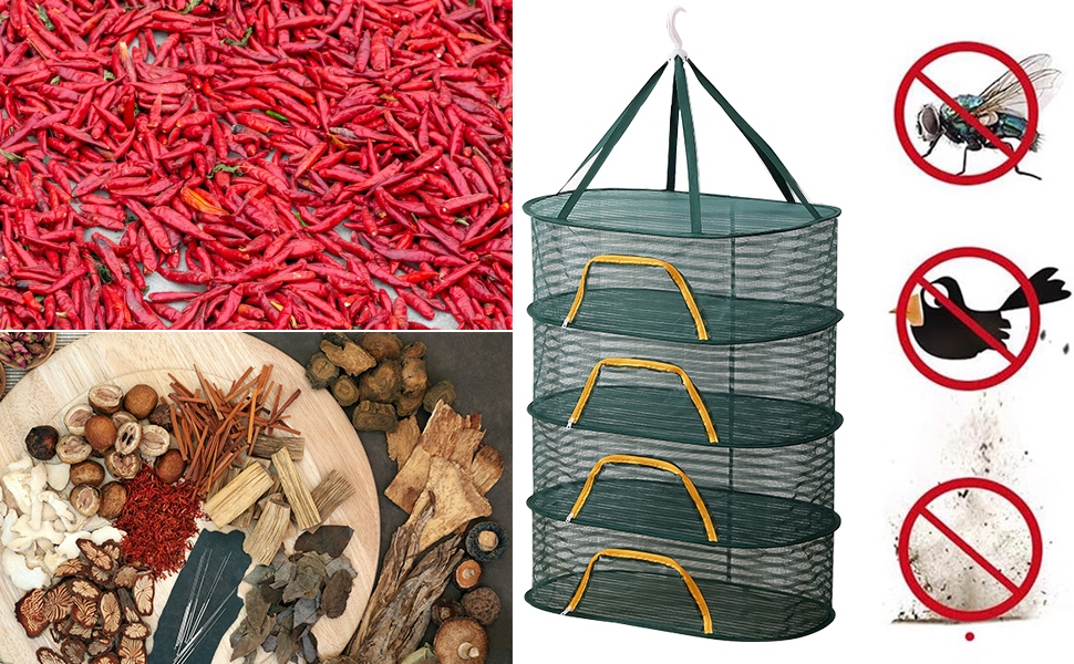 ✅ 【Легко в использовании】 Любой слой висящей сушильной сетки оснащен молниями, которые можно легко открыть и закрыть, создавая закрытое пространство для сушильных растений. Это может не только гарантировать, что растения не будут нарушены сильными ветрами, но и не позволяют входить мелких животных и птиц.