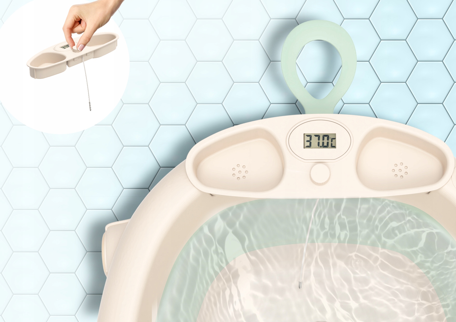 Благодаря термометру вы избавитесь от страхов возможного перегрева или охлаждения воды. Это решение дает уверенность в том, что малыш погружен в воду с идеальной температурой, адаптированной к его потребностям.