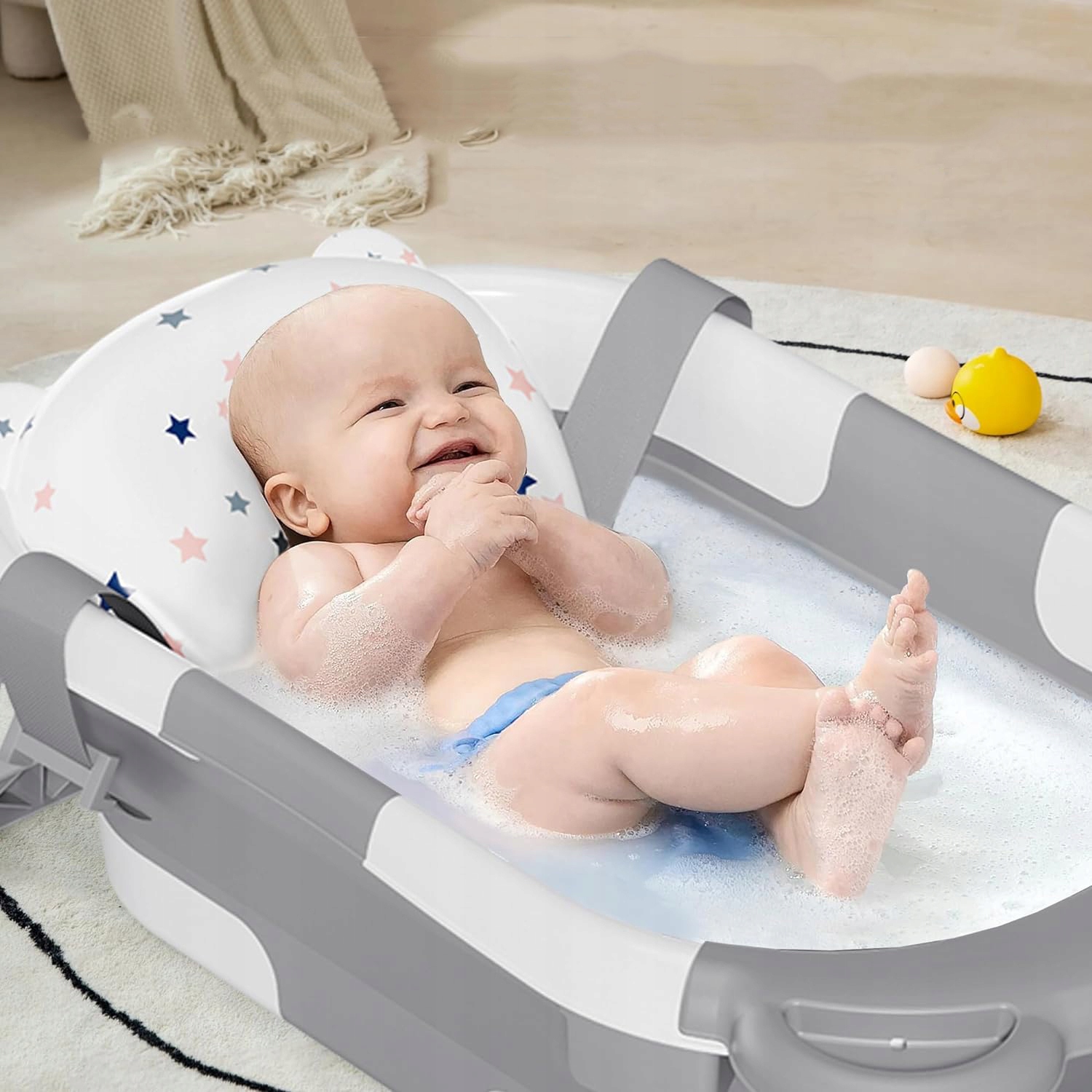 Складная ванна для новорожденного с подушкой, с дренажным отверстием, серое
