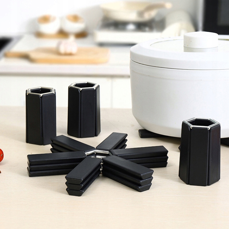 Устойчив к тепло и не -скольжению: эти стенды были разработаны для выдержания высоких температур и защиты стола от горячих сосудов и кухонной посуды. Анти -скользящая поверхность гарантирует стабильность и предотвращает случайное разлив.