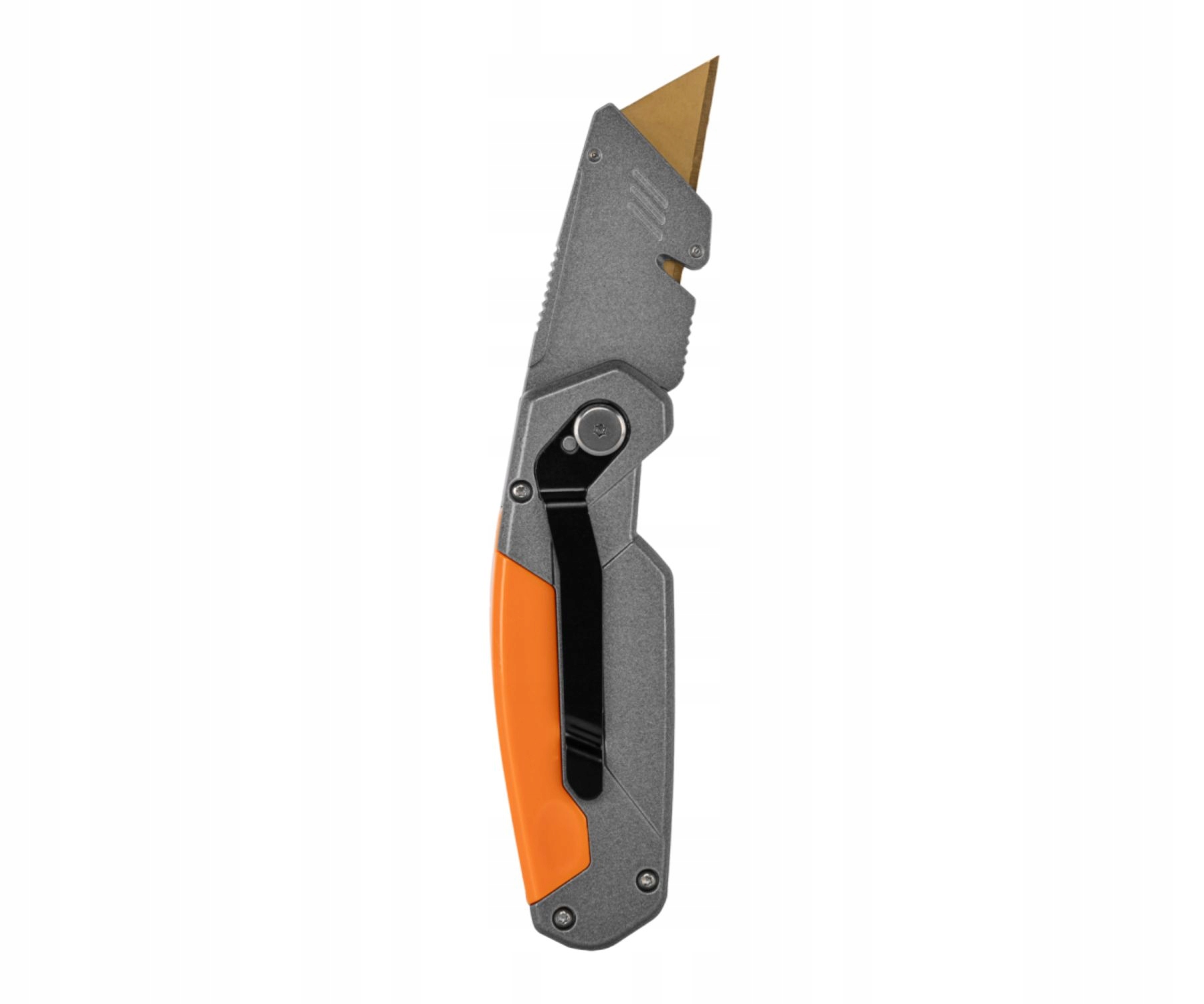 Оснащен складным лезвием шириной 19 мм, обеспечивает безопасность и комфорт использования.