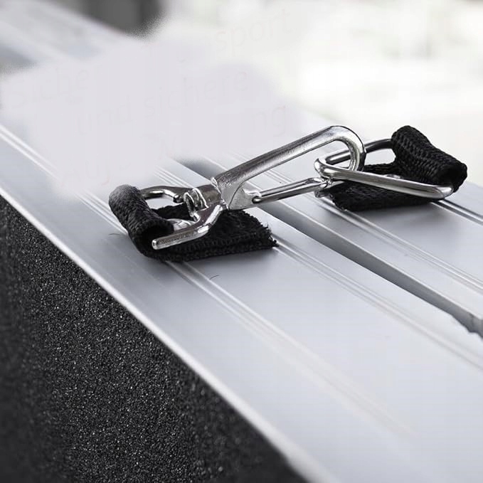 - Безопасность: Поверхность автомобильной лампы оснащена шероховатой и не -скользящей поверхностью. Это обеспечивает безопасное и нелепольное восхождение и спускание, несмотря на склонность. После складывания обе половины прикреплены с карабинером. Поверхность, которая прилипает к автомобилю, покрыта толстым слоем резины. Чтобы обеспечить большую защиту от царапин, вы можете прикрепить две резиновые прокладки по отдельности на автомобиле или на рампе.