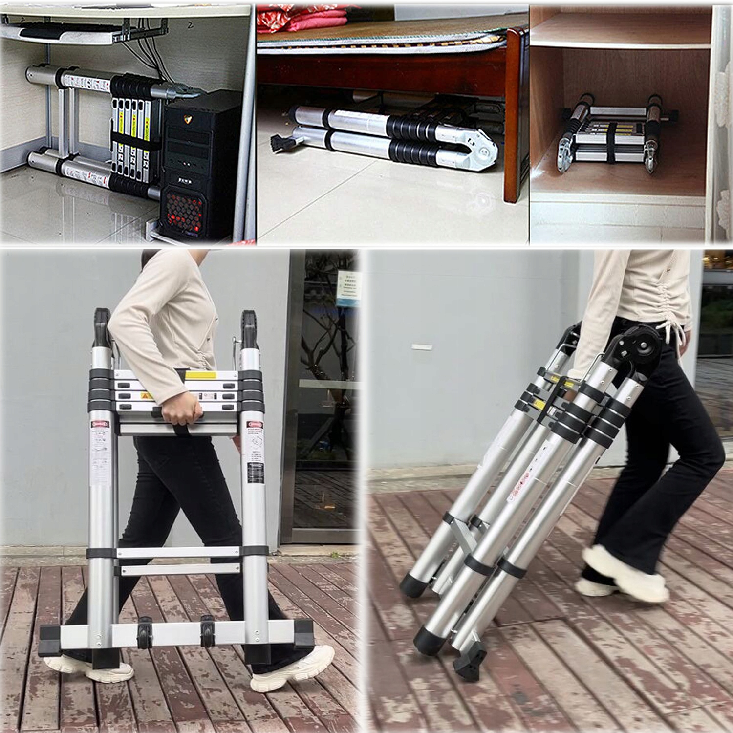 Универсальная телескопическая лестница Hooha: алюминиевую лестницу 2 в 1 можно использовать в качестве А-образных рам, прямых лестниц, выдвижных лестниц и лестниц. Эту телескопическую лестницу можно использовать по высоте по вашему желанию. Отлично подходит для подачи питания в дом/здание, украшения стен, замены лампочек, мытья окон, лазания по деревьям и т. д. Идеально подходит для использования внутри и снаружи помещений.