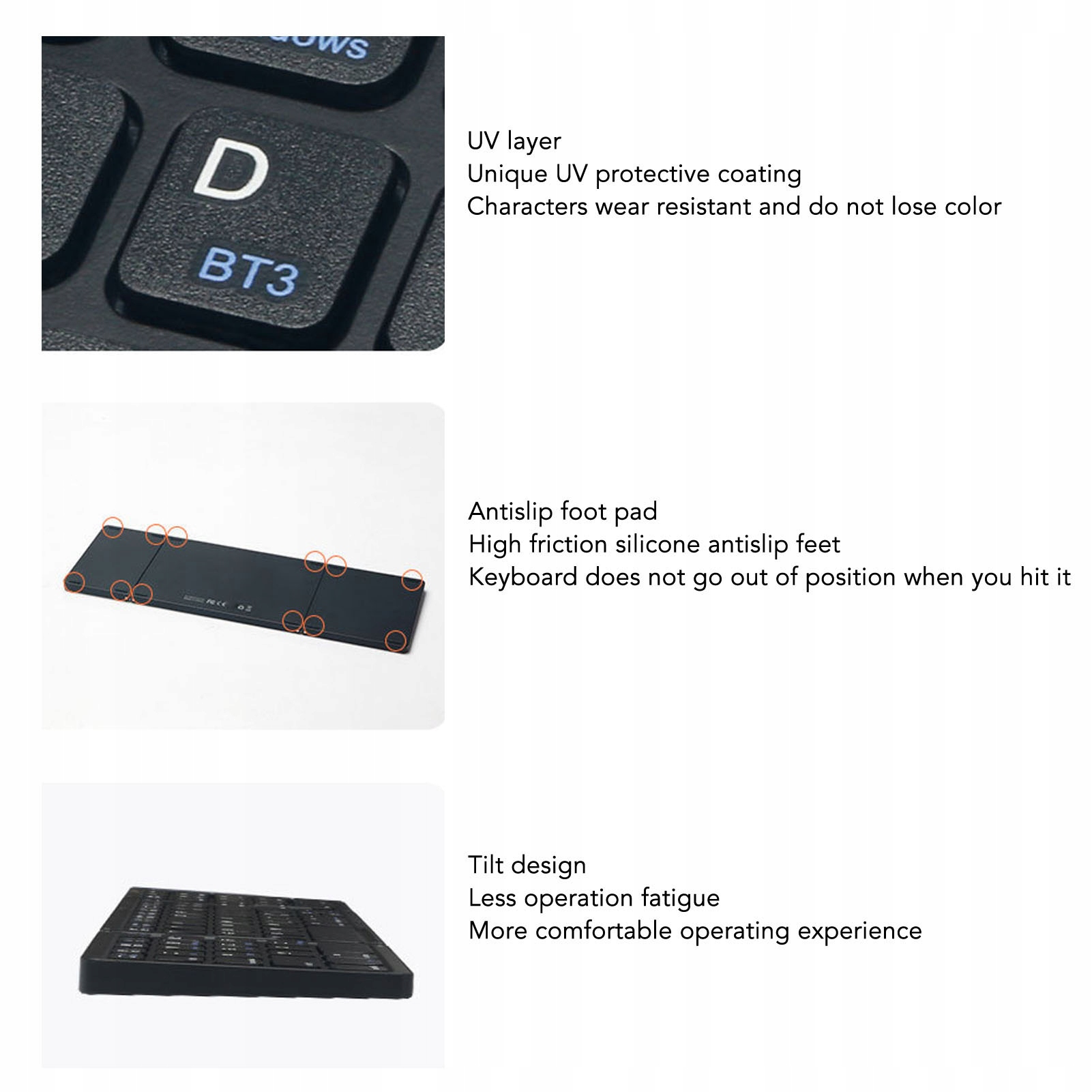 1. Bluetooth 5.1. Складная клавиатура оснащена встроенной поддержкой Bluetooth 5.1 для подключения к клавиатуре до трех устройств, поэтому вы можете переключаться между ними одним щелчком мыши, даже при использовании разных операционных систем.