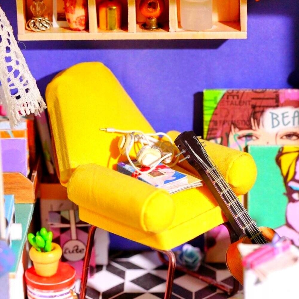 Набор, позволяющий собрать миниатюрный домик со светодиодным освещением. Для сборки модели использовалось дерево, бумага, ткань, проволока, пластик и различные декоративные элементы: красочные украшения, пайетки, бусины, искусственные цветы и многие другие материалы. Светодиодное освещение придает всему помещению дополнительный шарм, благодаря чему дом может служить атмосферным украшением или ночником. Помимо понятной графической инструкции, в упаковке также содержатся батарейки, кисточка, акриловые краски, прозрачный клей без запаха и пинцет для облегчения сборки мелких элементов. Создание этой модели поможет развить навыки ручного труда и принесет массу удовольствия.