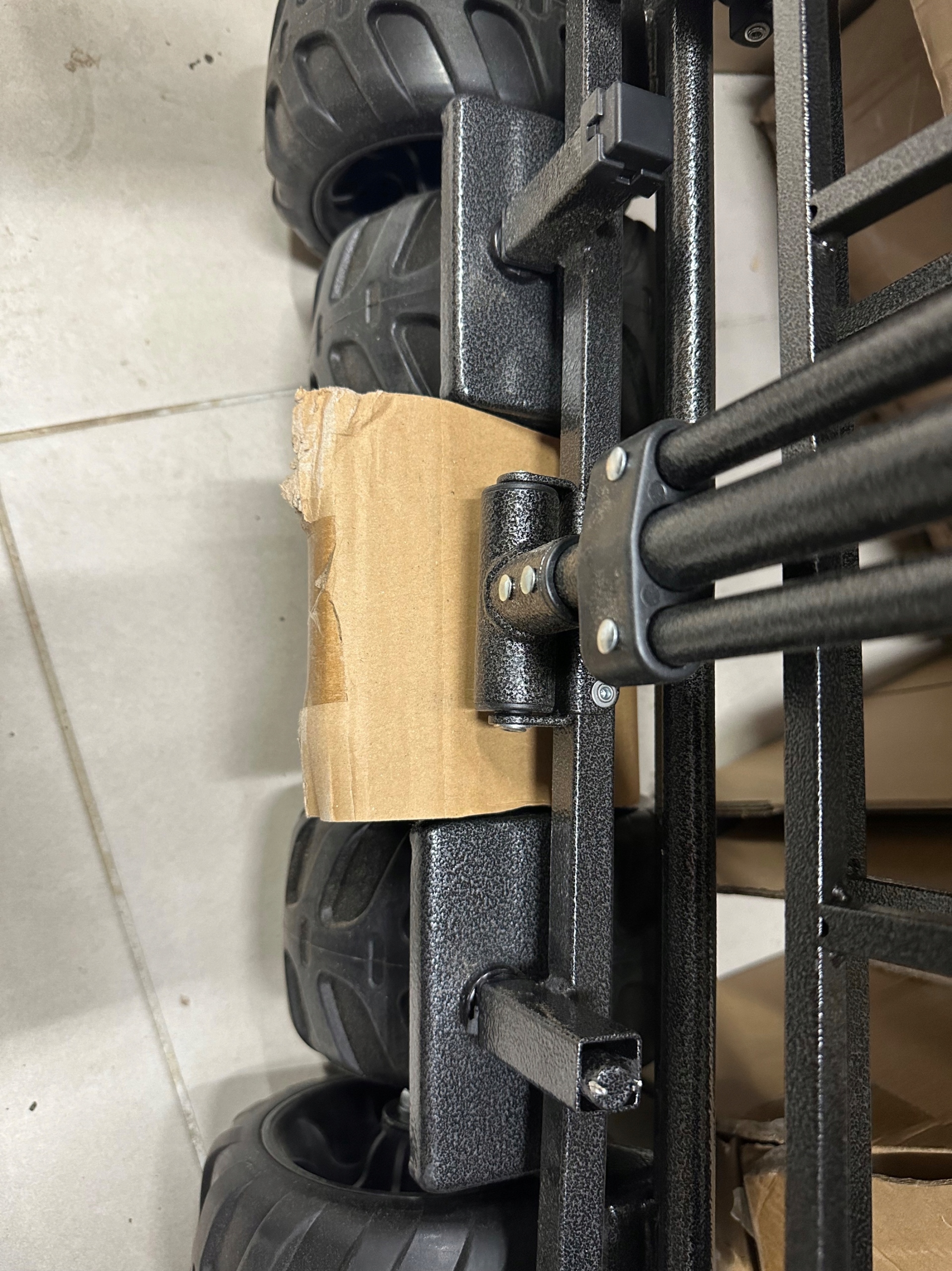 Прочная конструкция из высококачественной углеродистой стали обеспечивает долговечность и устойчивость при максимальной нагрузке до 150 кг. Размер коляски в сложенном виде оптимизирован так, чтобы ее можно было разместить в любом багажнике автомобиля, шкафу или гараже, что обеспечивает ее удобное хранение.