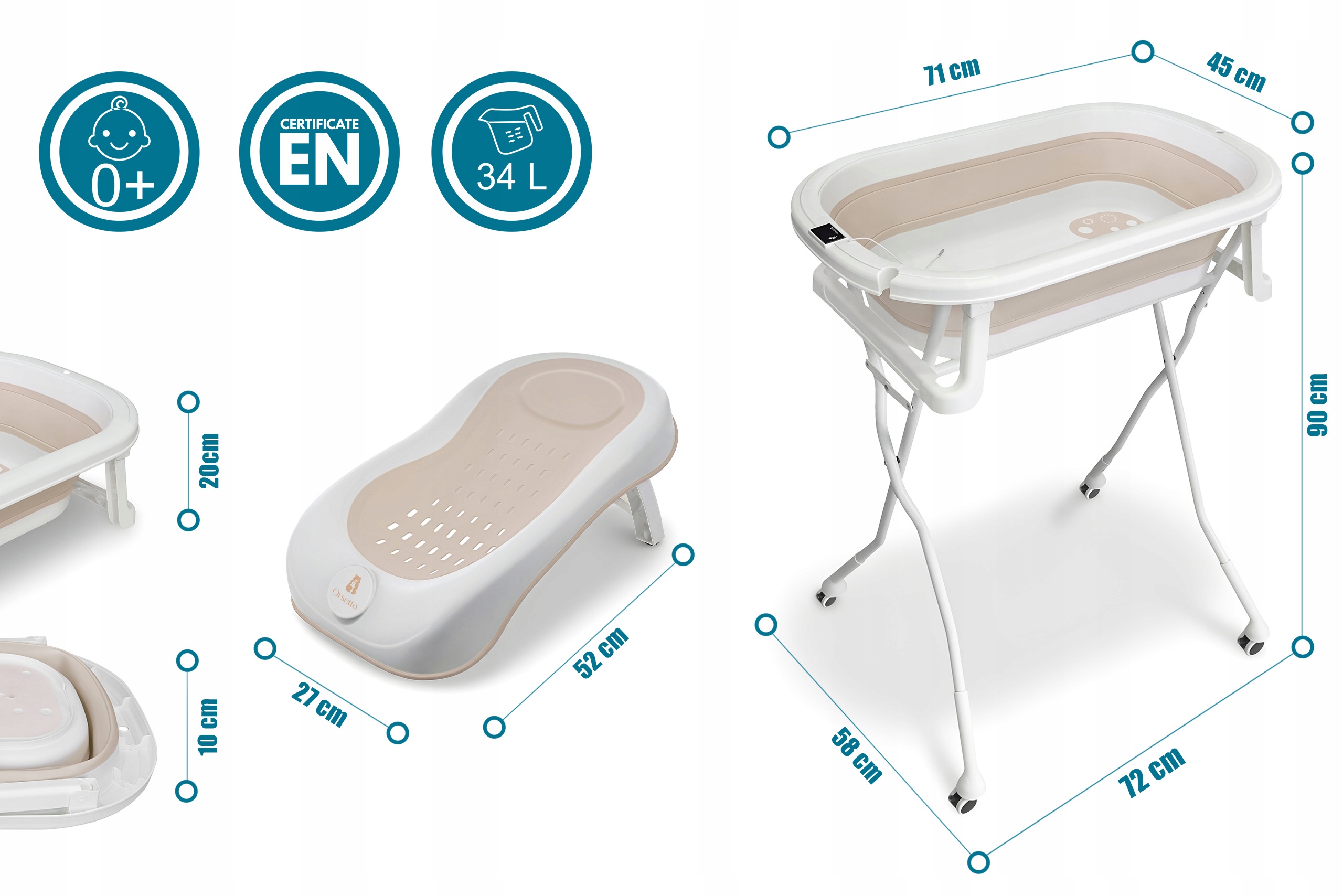 ✅ Эргономичная высота - 89,5 см - позволяет комфортно купать малыша, не наклоняясь, что защищает позвоночник и обеспечивает комфорт даже при длительном использовании.