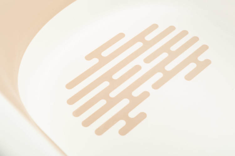 Ванна оснащена резиновыми ножками, которые предотвращают ее перемещение во время купания. Противоскользящая поверхность снизу обеспечивает устойчивость, что особенно важно для детей, которые учатся сидеть самостоятельно.
