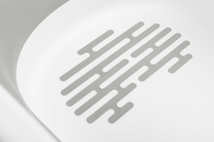Ванна оснащена резиновыми ножками, которые предотвращают ее перемещение во время купания. Противоскользящая поверхность снизу обеспечивает устойчивость, что особенно важно для детей, которые учатся сидеть самостоятельно.