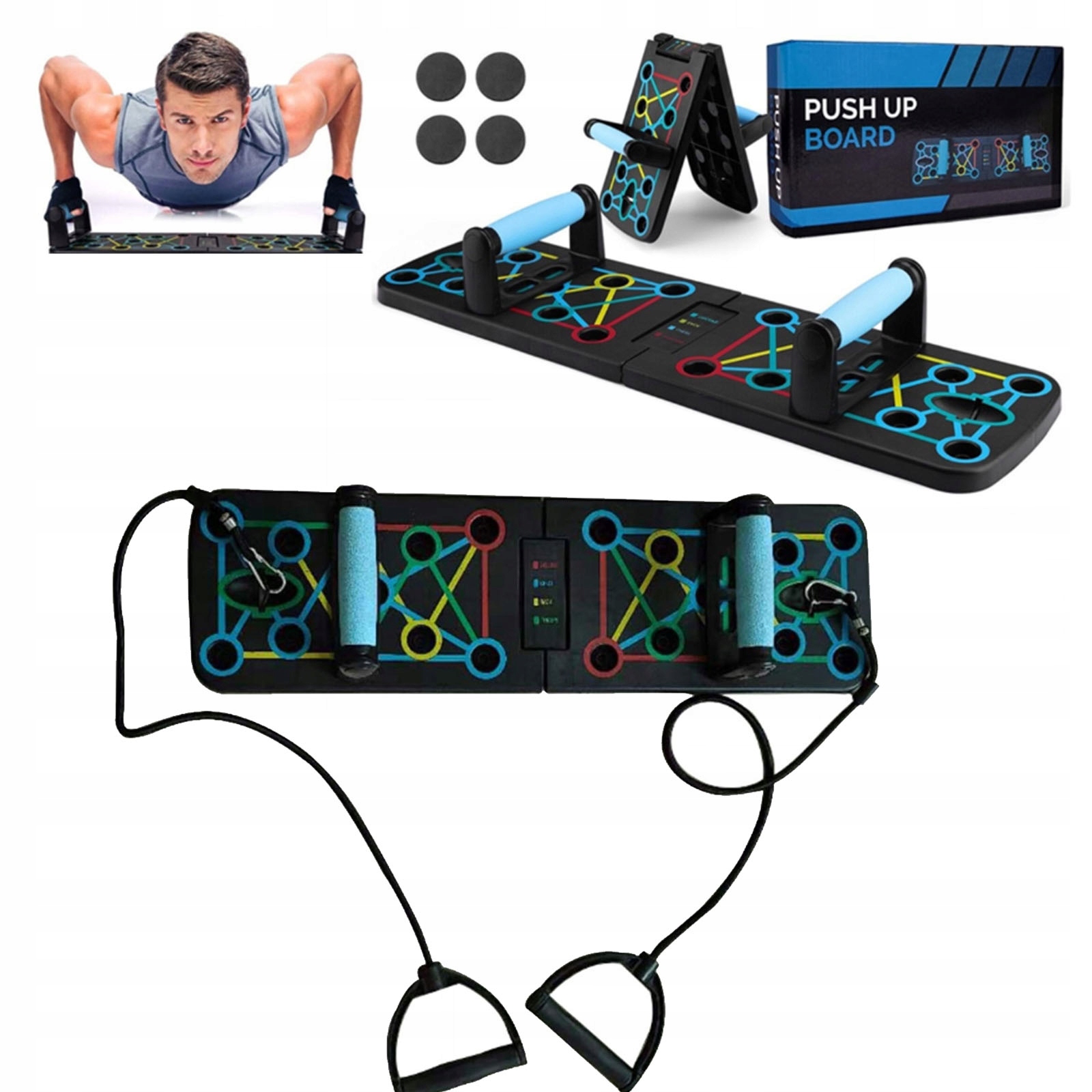 ✨Складная доска для отжиманий с цветовой маркировкой для тренировки мышц рук, груди, спины и корпуса. Комплект с резинками.