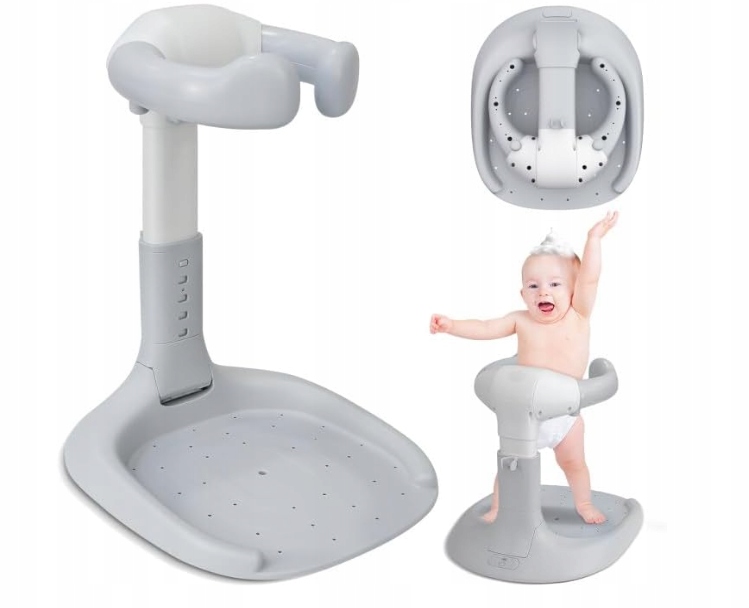 - 5-ступенчатая регулировка высоты: Идеально подстраивается под рост ребенка (6–24 месяца, 47–58 см)! Эта универсальная подставка для детского душа предлагает 5 простых настроек высоты. Эргономичные ручки, поворачивающиеся на 360°, обеспечивают надежный захват, повышают уверенность в себе и поддерживают правильную осанку при купании ребенка и обучении стоять.