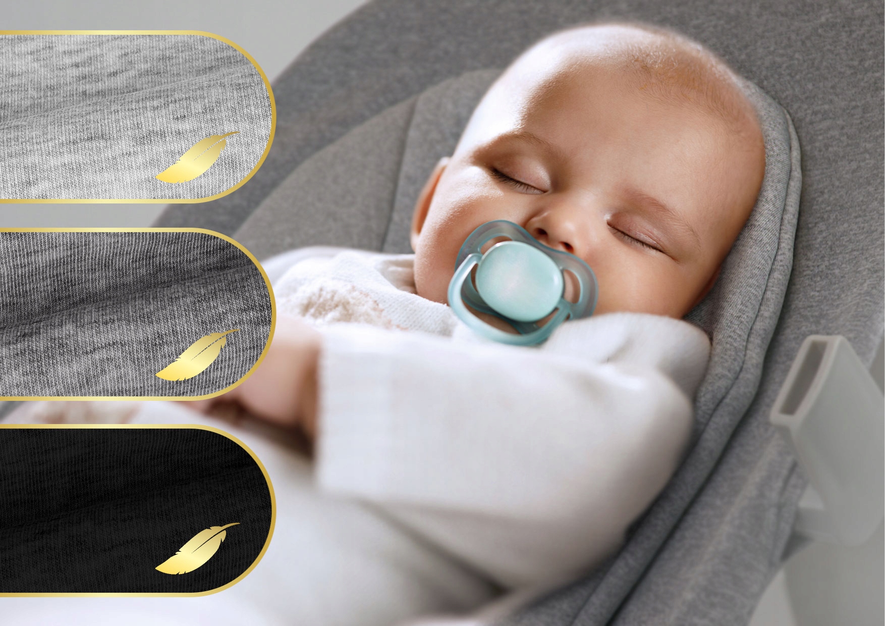 Безопасность – основа. Мы это прекрасно знаем, поэтому оснастили шезлонг трехточечными ремнями безопасности с обеих сторон, застегивающимися на пряжки, которые защищают малыша от выпадения из сиденья.