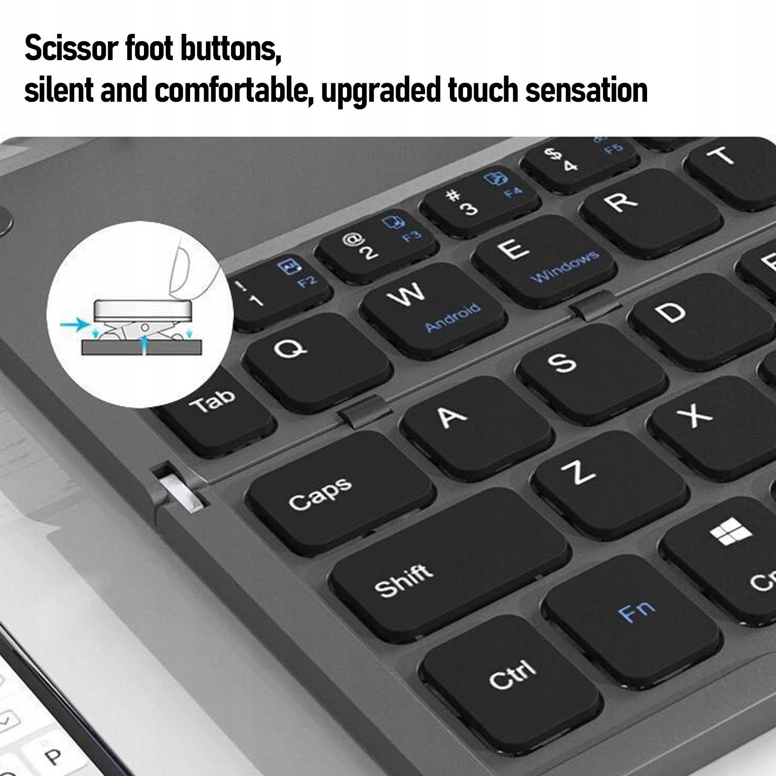 1. Эргономичность и удобство: складная Bluetooth-клавиатура эргономична и имеет формат 60 клавиш. Сенсорные кнопки портативной клавиатуры имеют матовый вид, что обеспечивает удобство использования. Горизонтальное складывание делает удержание более удобным