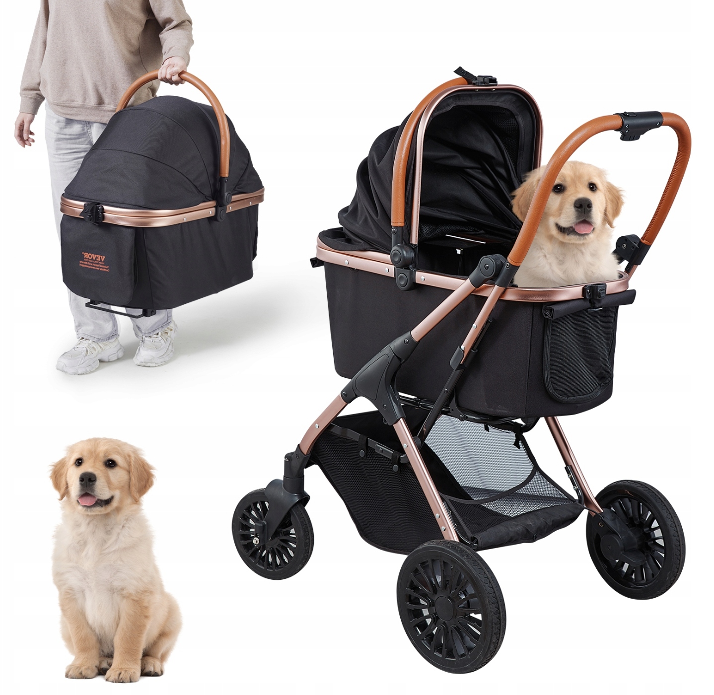 Коляска для собак – идеальное решение для владельцев домашних животных, которые хотят обеспечить своим питомцам комфорт, безопасность и мобильность. Благодаря легкой, но прочной конструкции, большим колесам из полиуретана и системе складывания в один щелчок, он является идеальной переноской как для повседневных прогулок, так и для длительных путешествий.