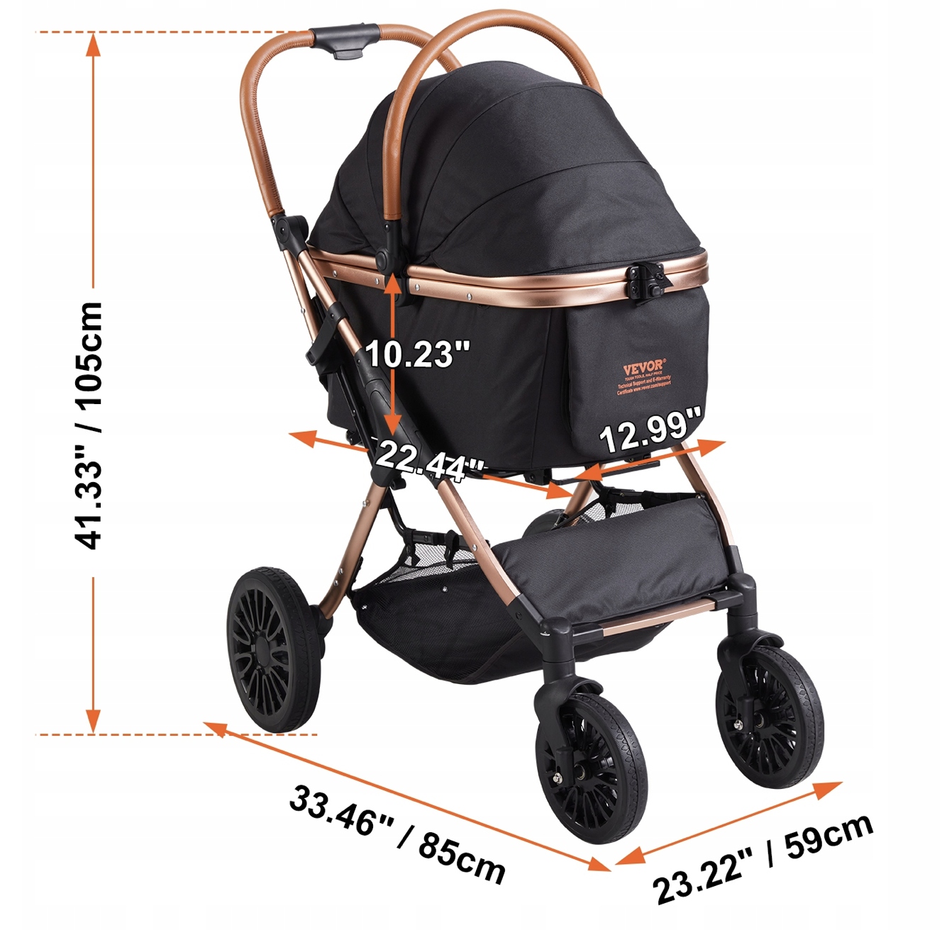 СКЛАДНАЯ КОЛЯСКА ДЛЯ СОБАКИ И КОШКИ ВМЕСТИМОСТЬЮ 30 КГ, 105 x 85 x 59 СМ