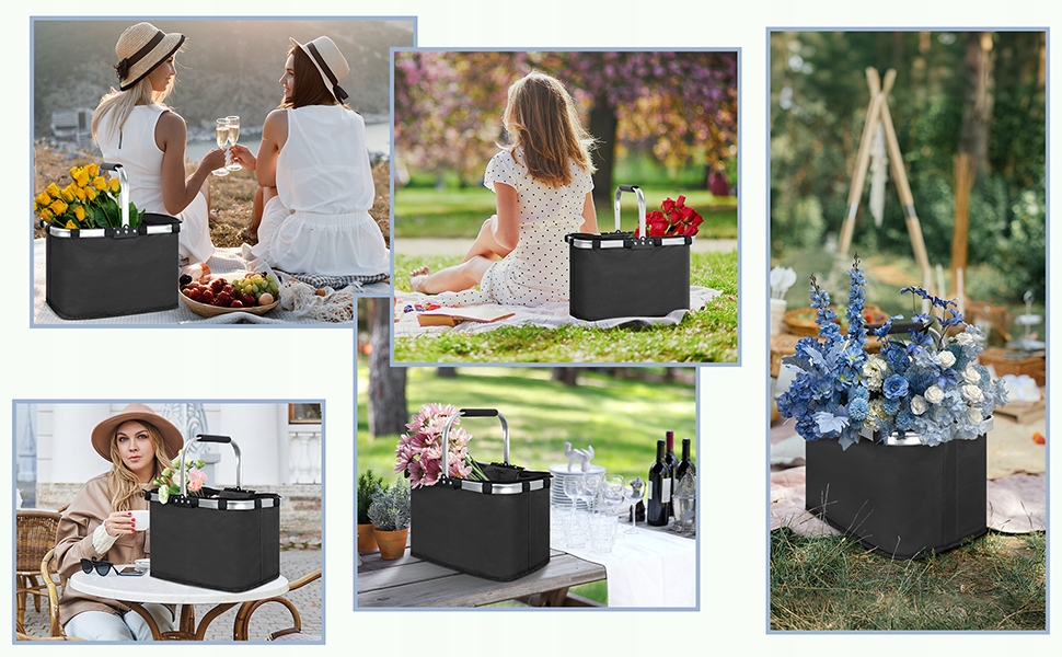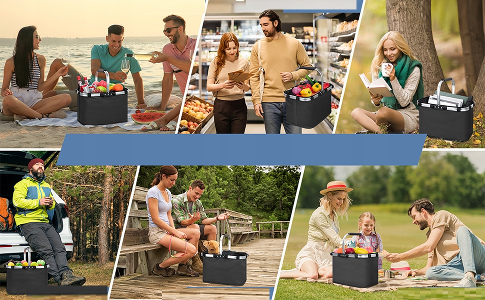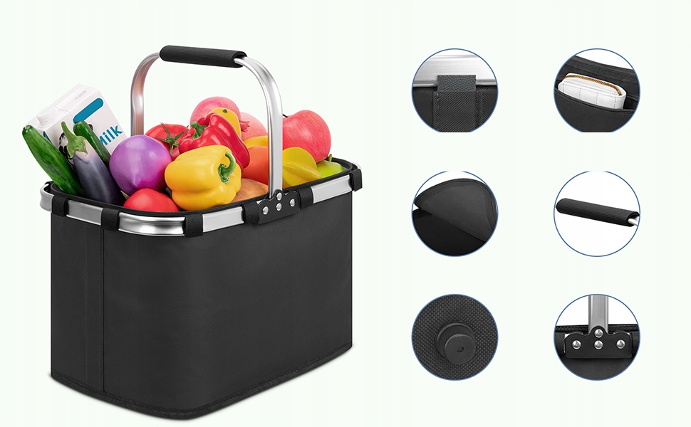 Корзина для покупок с крышкой на молнии защищает содержимое от пыли и влаги, надежно скрывая его. Вы можете использовать или спрятать крышку, в зависимости от ваших потребностей на пикнике или покупках. Корзина с ручкой удобная и легкая, ее легко переносить, она помещается как в магазинной тележке, так и в автомобиле.