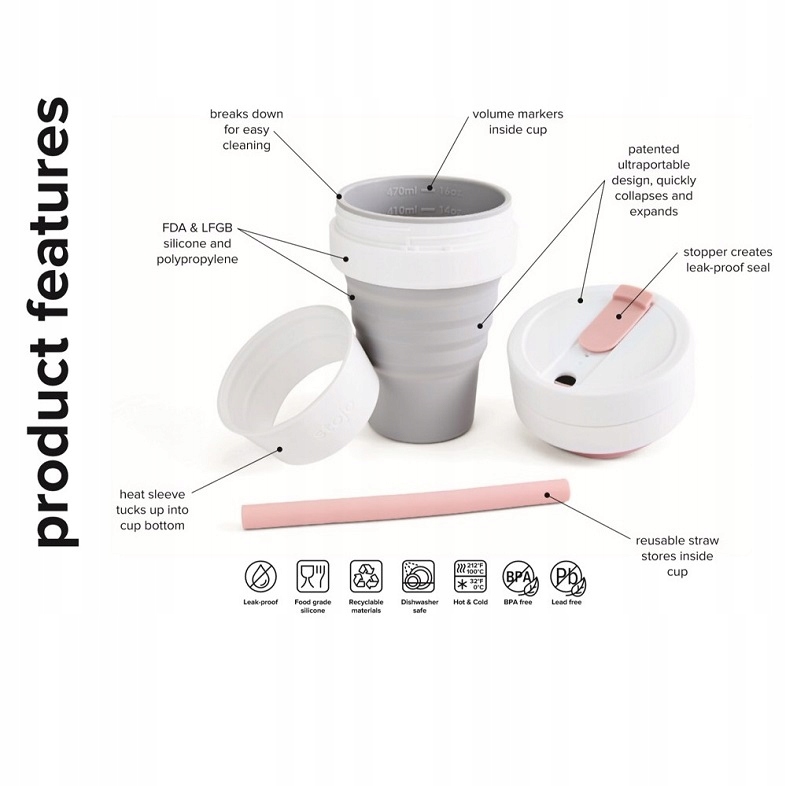 Не успели выпить кофе из любимой кофемашины перед выходом из дома? У вас есть любимый сорт чая и вы пьете только этот? В непосредственной близости от вас не подают горячие напитки? А может быть, вы хотите взять из дома приготовленный по секретному рецепту коктейль и насладиться им на прогулке? Решением является складная, портативная, герметичная многоразовая чашка Stojo Biggie. Это не только гениальное, но и экологическое решение, благодаря которому вам больше не придется использовать бумажные стаканчики, когда берете кофе с собой. Версия Biggie оснащена многоразовой силиконовой трубочкой, идеально подходящей для холодного кофе или смузи. Stojo Biggie с горячим кофе или чаем согреет руки в ожидании автобуса, освежит прохладительными напитками во время горячих поездок по городу, укрепит силы во время прогулки с коляской, станет верный спутник в каждой поездке на автомобиле или в пробке, а используя его на работе, вы избежите затопления рабочего стола во время внезапного перерыва ;)