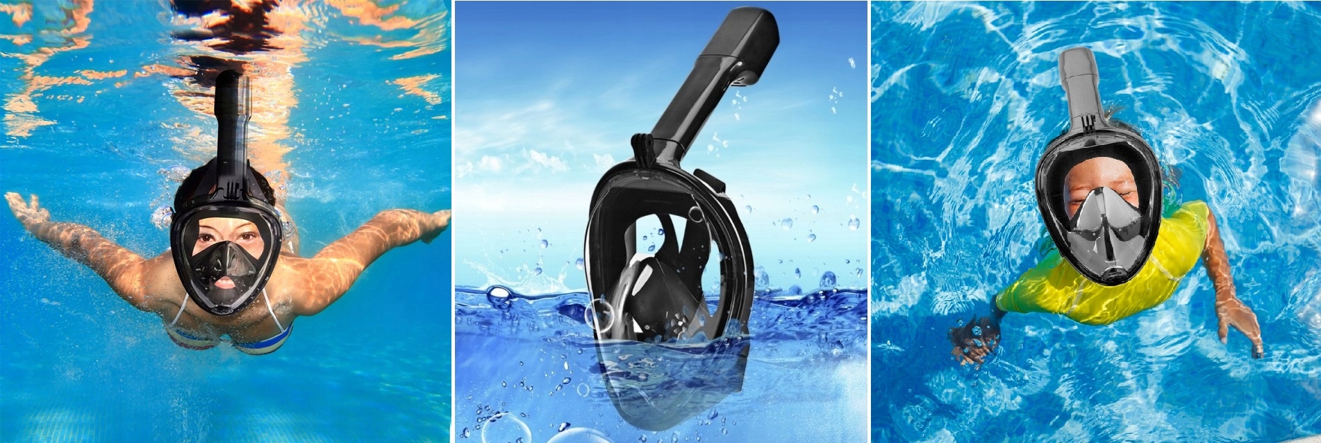 Подводная полнолицевая маска для подводного плавания создана для всем любителям этого уникального вида спорта. Благодаря ему вы сможете в комфортных условиях любоваться красотами подводной фауны и флоры. Он изготовлен из материалов высочайшего качества, гарантирующих безопасность и комфорт. Его форма и силиконовый воротник, который очень легко всасывается, идеально прилегают к лицу, а благодаря большому закругленному стеклу увеличивается перспектива и видимость под водой.