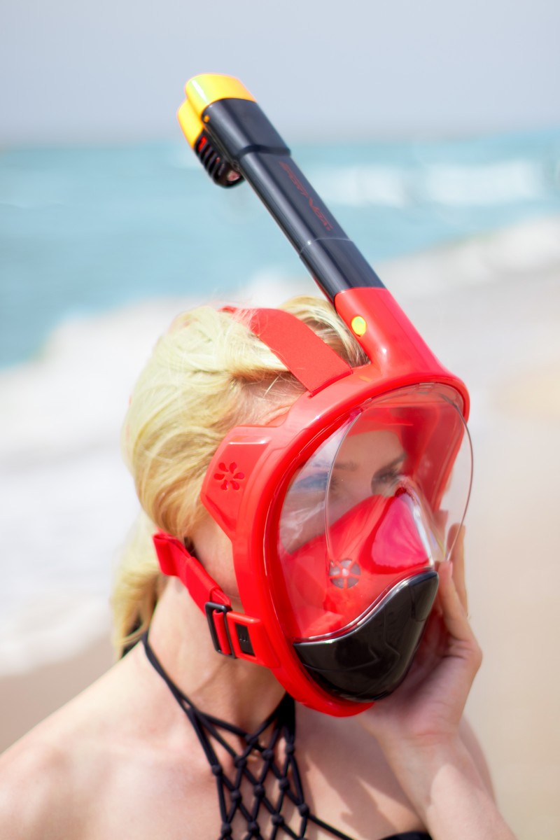 Современная полнолицевая маска со складной трубкой обеспечивает высочайший уровень ощущений при погружениях с поверхности (сноркелинге).