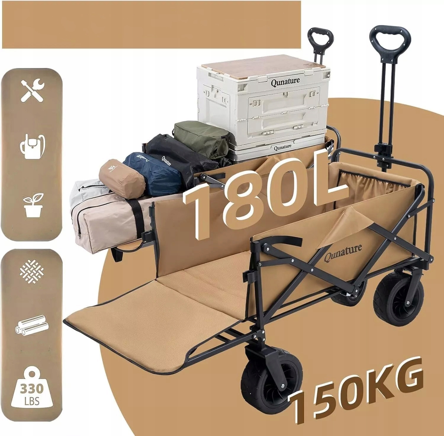 Складная пляжная коляска, туристический прицеп, 180л, грузоподъемность 150кг QUNATURE