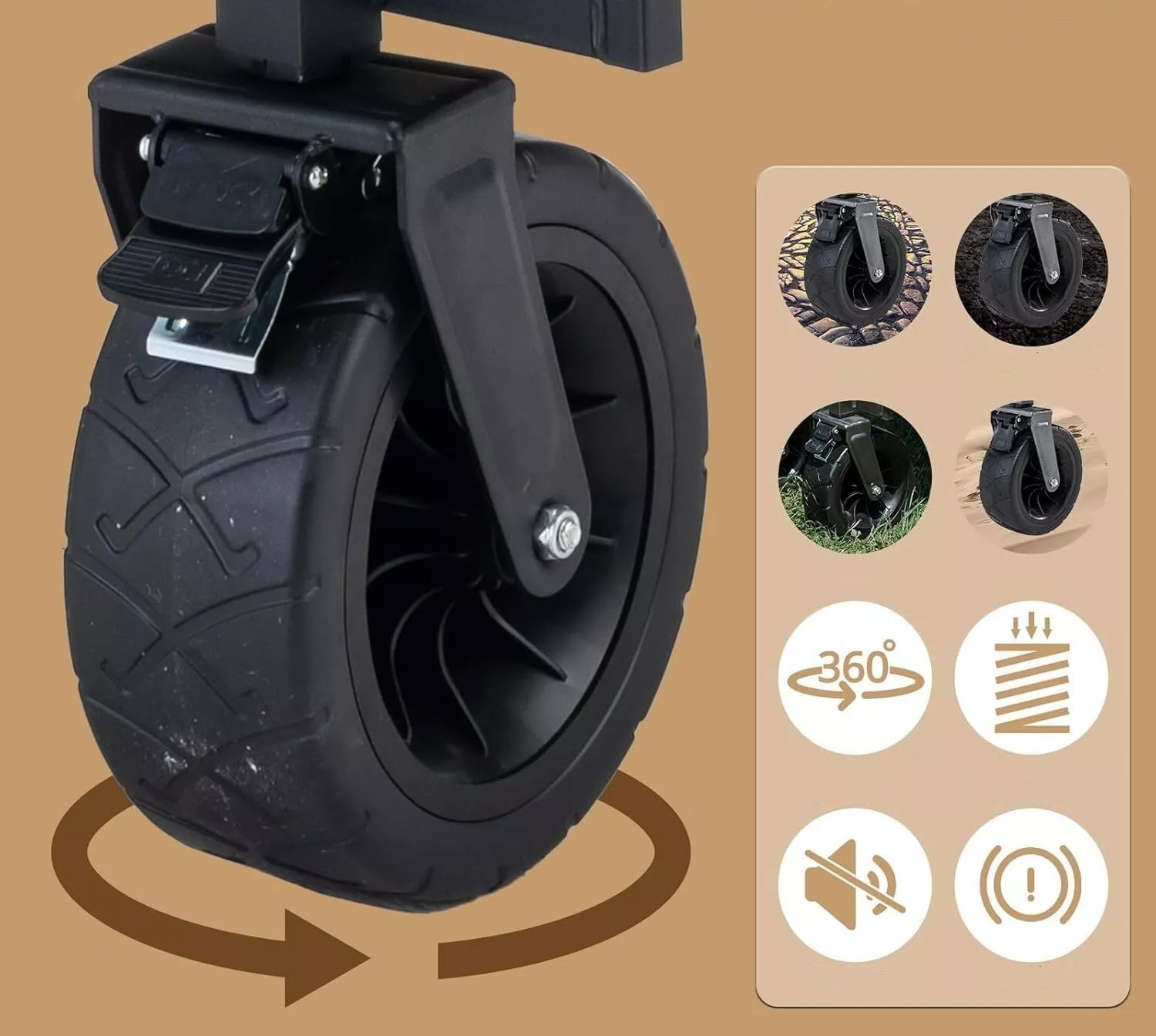 - Колеса: ширина 7 см Внедорожные колеса из ПВХ с тормозами