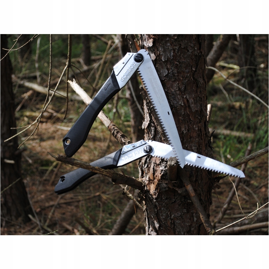 Ручная пила Silky, модель Gomboy 7, оснащена полотном длиной 240 мм и < b >функциональный чехол, защищающий пилу во время ее переноски. Чехол имеет застежку-петлю, которую можно прикрепить к ремню. Благодаря возможности складывания пилы (два положения полотна в открытом положении) мы получаем компактный инструмент, не занимающий много места в туристическом рюкзаке или удобной сумке охотника.