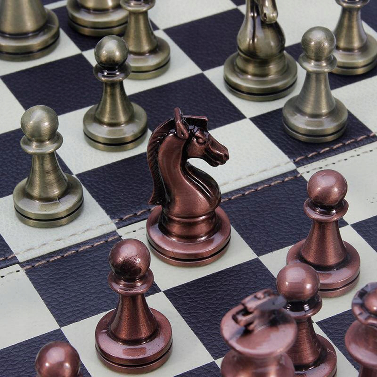 Складна шкіряна шахова дошка. Металевий шаховий набір, великий