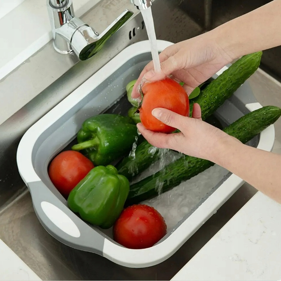 СКЛАДНА СИЛІКОНОВА МИСКА, РІЗІЛЬНА ДОШКА, ПОРТАТИВНИЙ ПІДДНОК 3 в 1