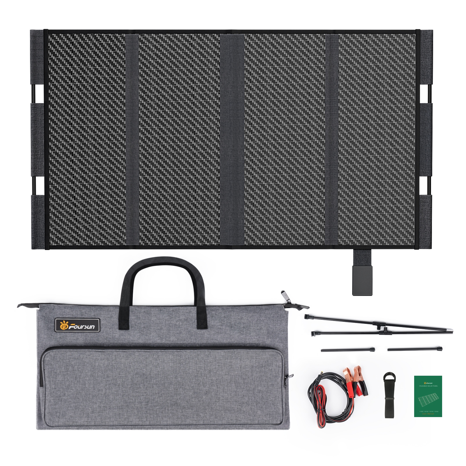 Портативность и складность: солнечная панель Foursun мощностью 100 Вт портативна, складна и компактна, ее вес составляет всего 6,6 фунта/3 кг. Размер в сложенном виде составляет всего 23*11,2*1,2 дюйма.