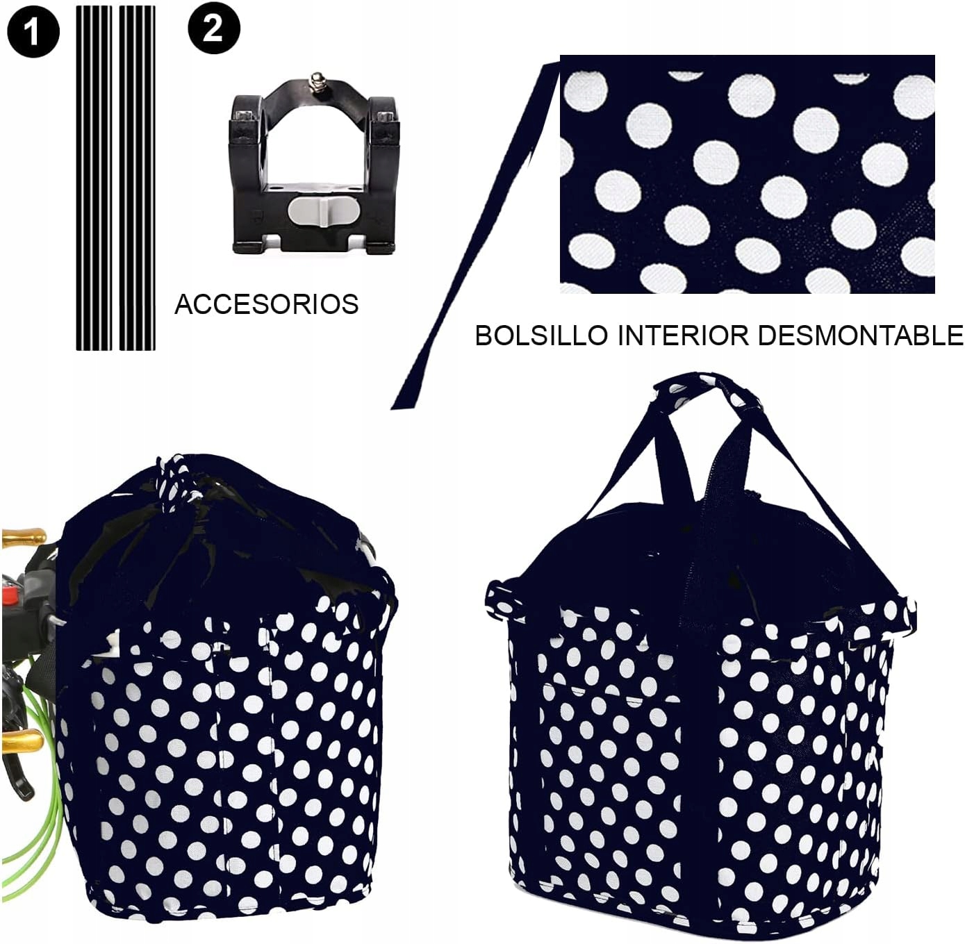 Корзина для велосипеда крепится к рулю с помощью ручки «CLICK». Ручка позволяет быстро прикрепить или снять корзину с велосипеда без использования каких-либо инструментов. Корзина очень вместительная, в нее легко поместится сумочка или сумка для покупок, имеется удобная ручка для переноски.