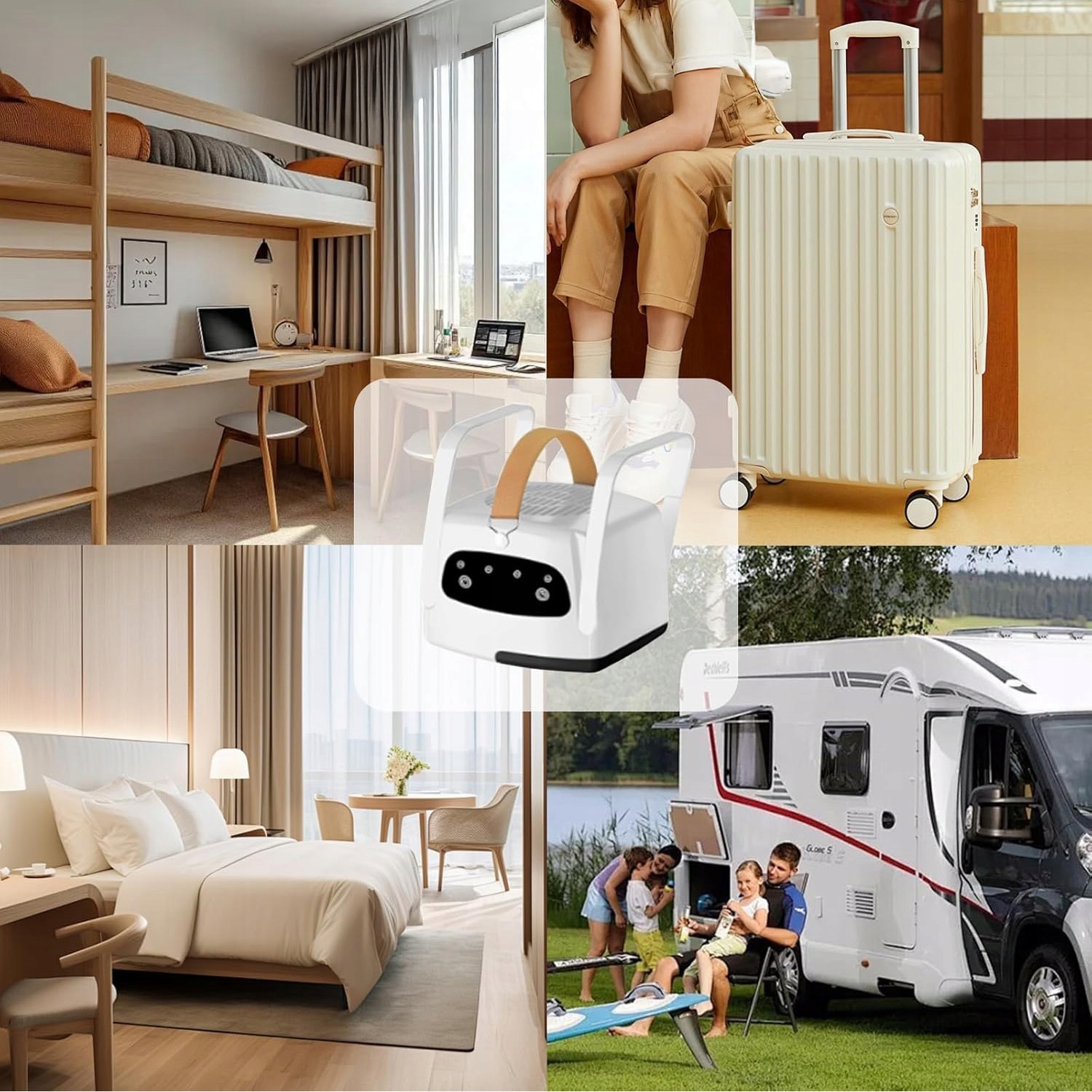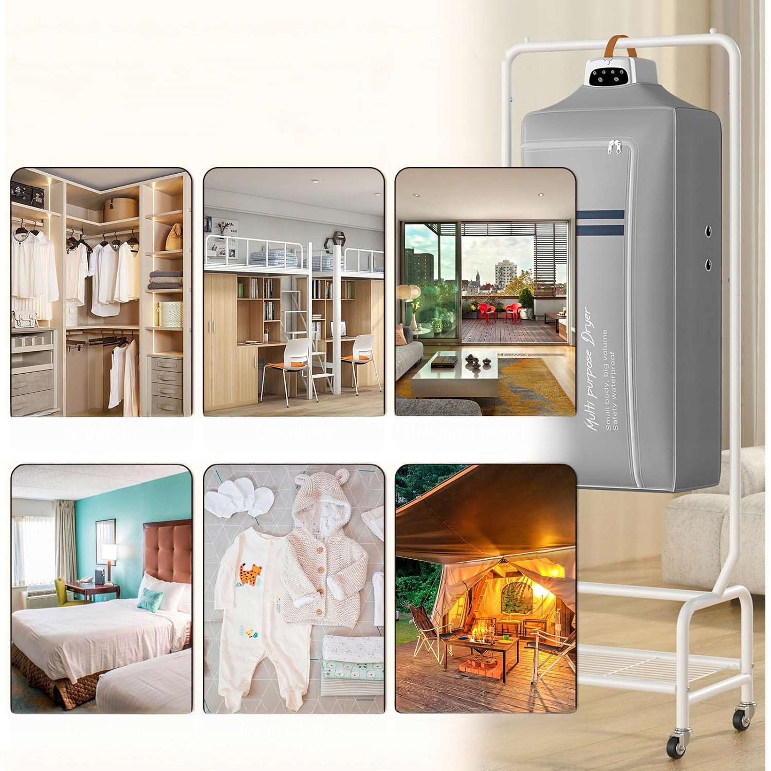 ⭐ Будь то Из-за погоды (сезон дождей, холодная зима) или ограниченного жилого пространства (квартира, кемпер) у вас всегда болит голова при развешивании и сушке одежды? Благодаря этой складной умной сушилке и дезинфектору «малого размера, большой энергии» вам не придется беспокоиться о дождливых днях, зимней сублимационной сушке и ограниченном пространстве! Одна машина может удовлетворить потребности в сушке в различных сценариях, таких как дом, квартира, кемпинг и гостиница, что легко избавит вас от хлопот с сушкой!