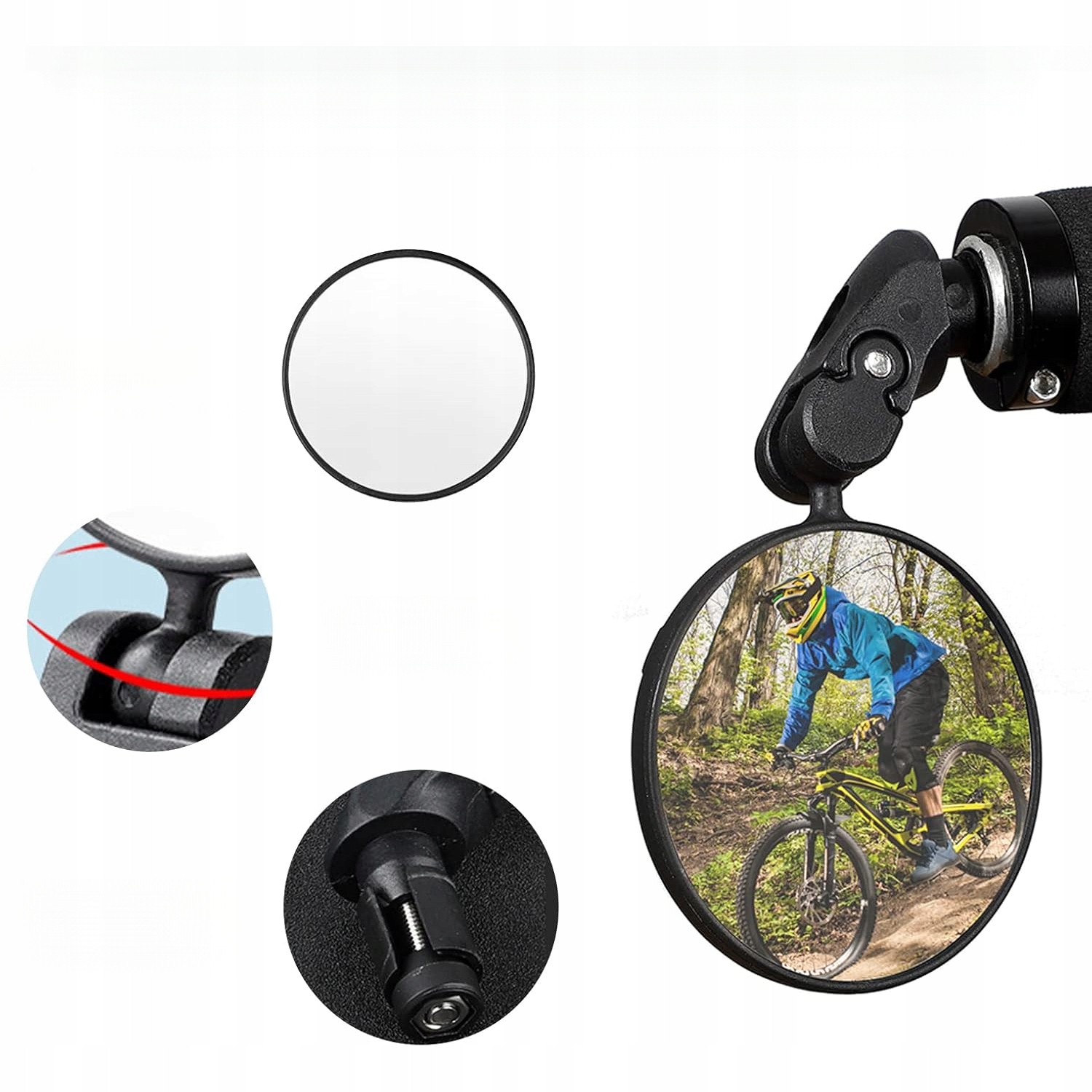 【Выпуклое зеркало HD Safe Bike】 — Зеркало для горного велосипеда с выпуклой линзой обеспечивает широкое поле зрения и может быть отрегулировано под любым углом. Перед использованием зеркала снимите защитную пленку.