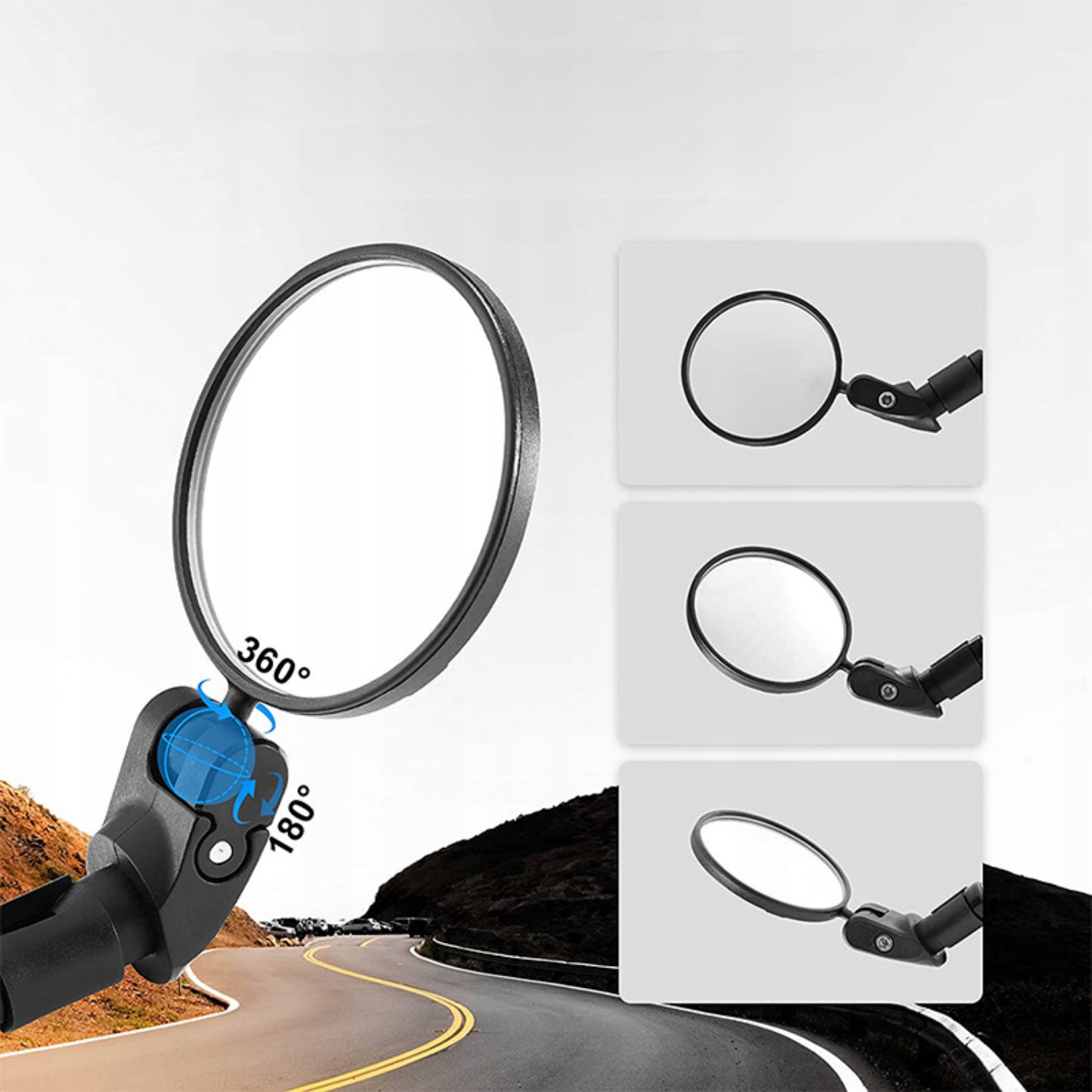 【Вращение на 360 градусов】 - Всегда обеспечивает хороший обзор, основание позволяет вращаться на 360°, поэтому вы можете легко настроить зеркало на любой тип велосипеда.