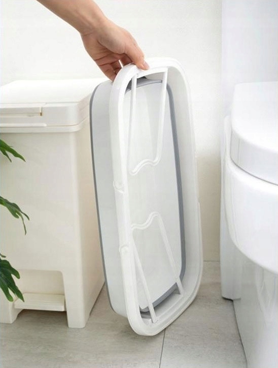 Складное силиконовое ведро, идеально подходит для небольших помещений. В сложенном виде занимает мало места – ведро легко можно задвинуть под кровать или за шкаф.
