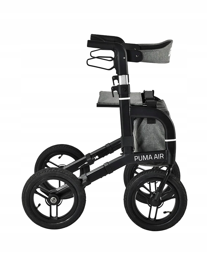 Откройте для себя свободу передвижения с Rollator PUMA AIR, исключительно прочной и универсальной четырехколесной опорой для инвалидной коляски, предназначенной для использования на открытом воздухе. Легкая алюминиевая рама с усиленными 12-дюймовыми пневматическими колесами и надувными шинами обеспечивает непревзойденную устойчивость и комфорт даже на неровной местности. Он легко преодолеет неровные тротуары, бордюры и пороги, обеспечив безопасное передвижение.