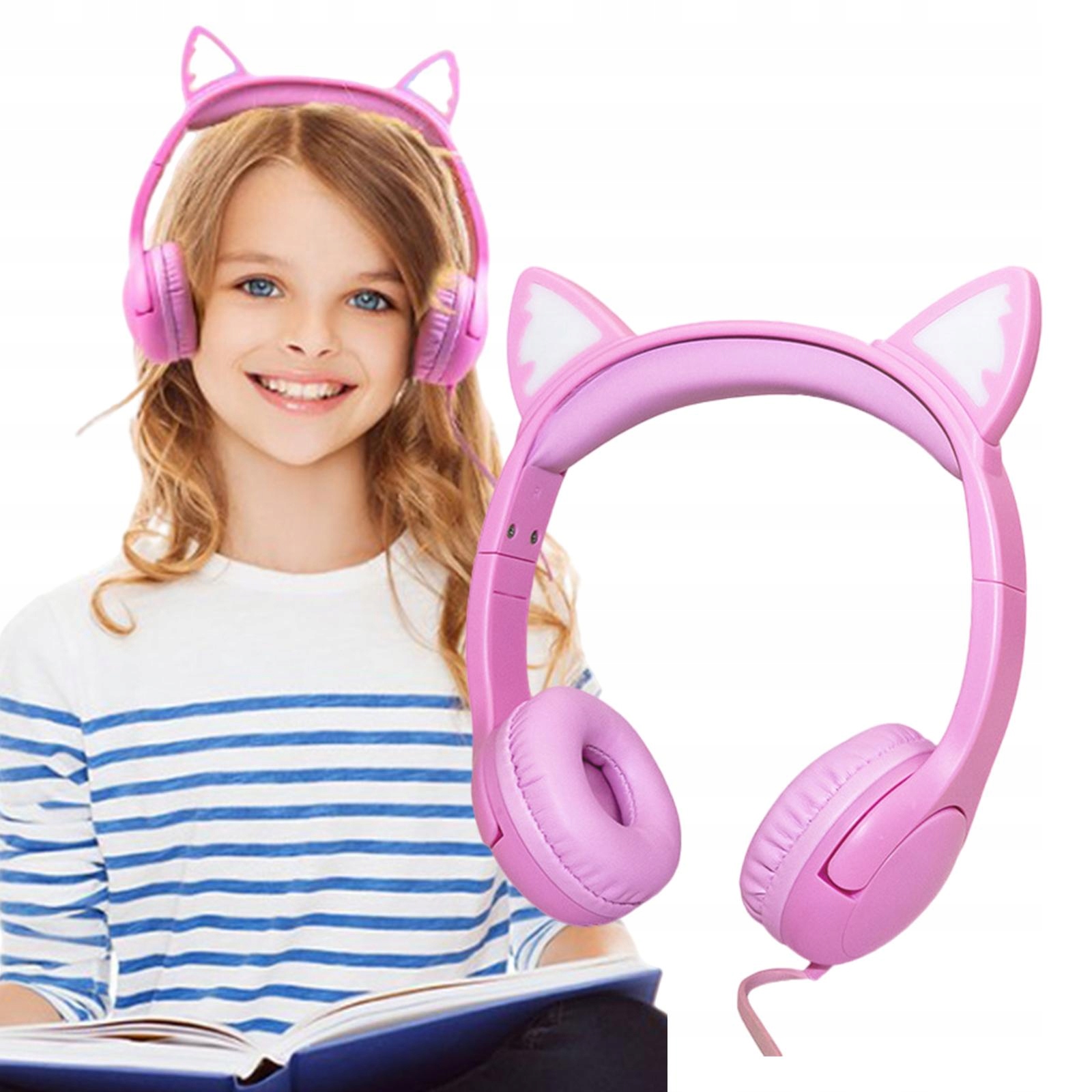Детские наушники с кошачьими ушками и микрофоном, безопасное проводное подключение для онлайн-обучения в школе, розовые