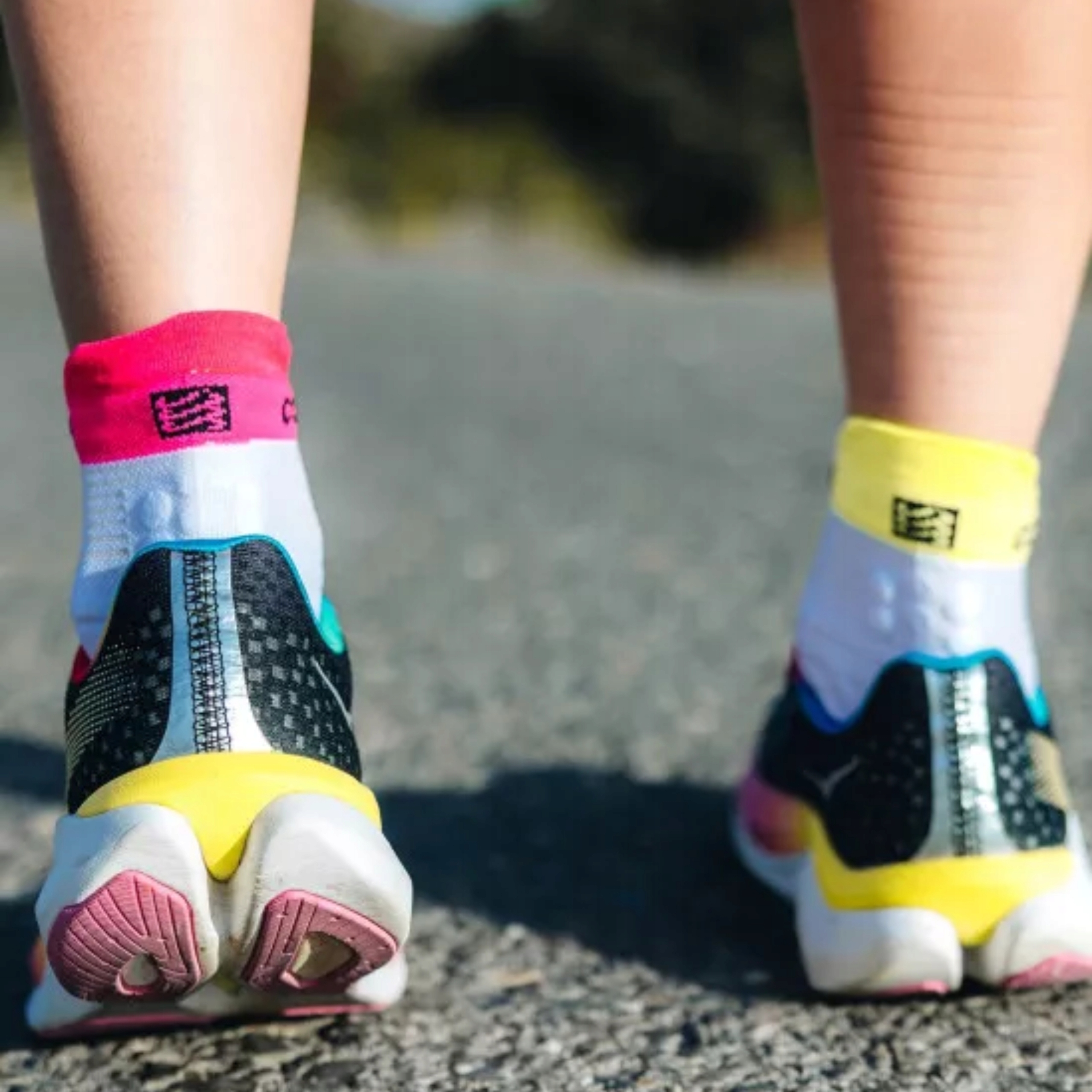 🏃♂️ Носки для бега COMPRESSPORT PRORACING V4 RUN LOW Носки для бега Белый/Желтый/Розовый 🧦